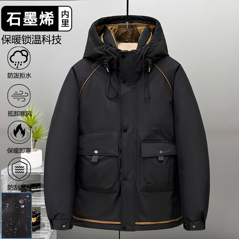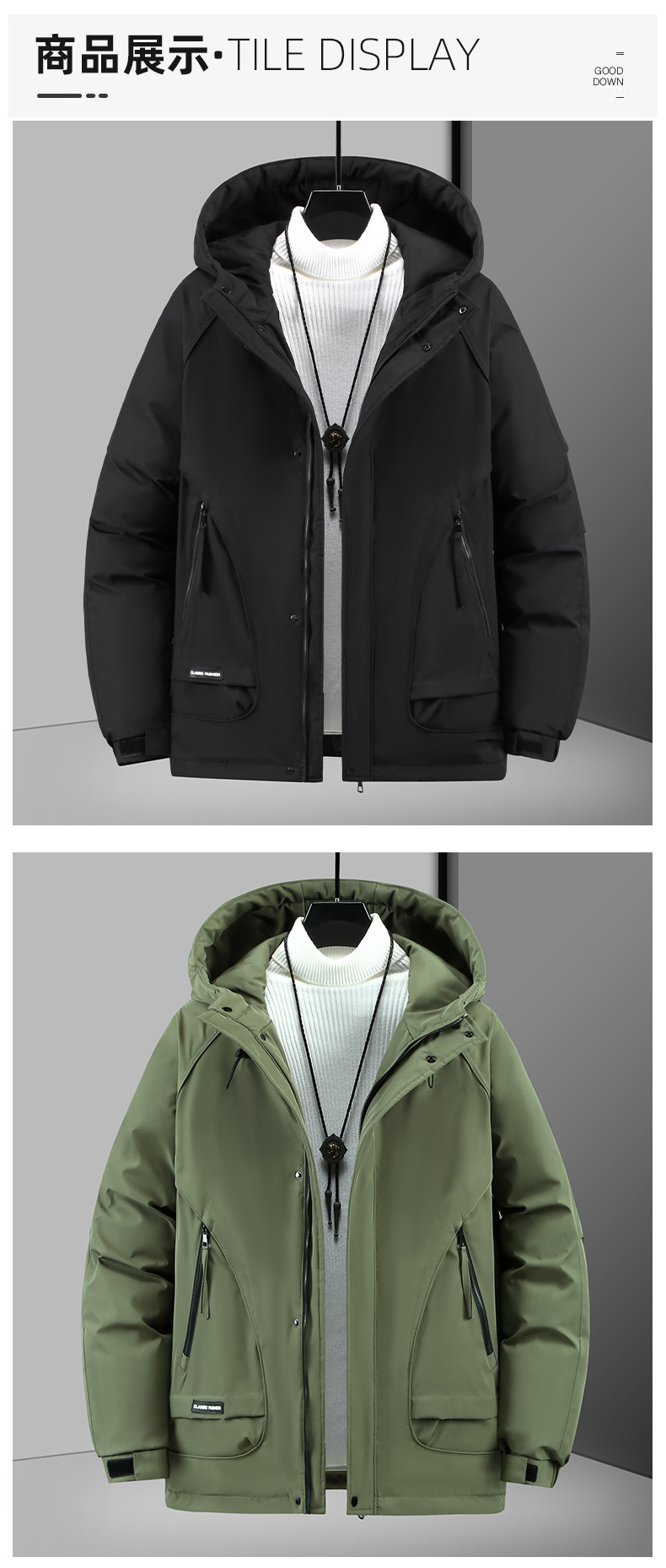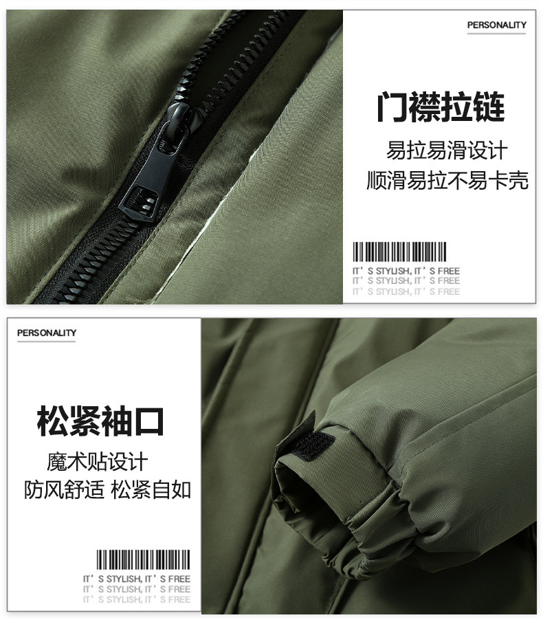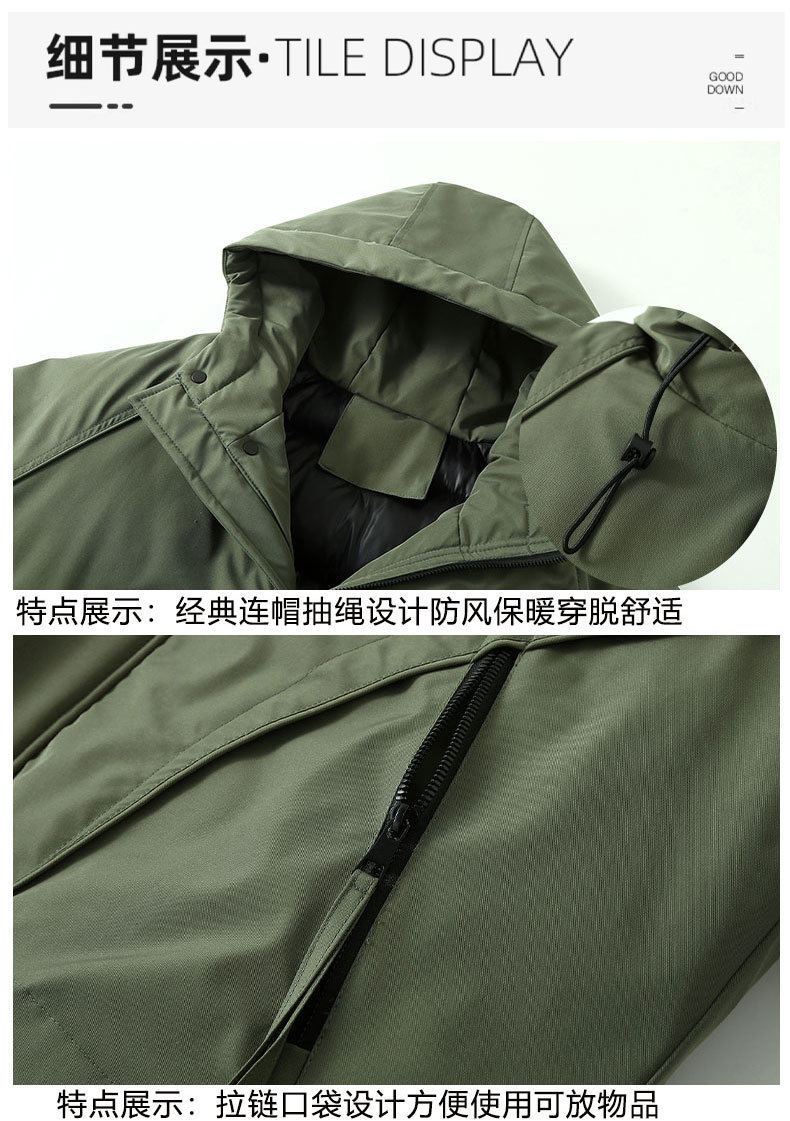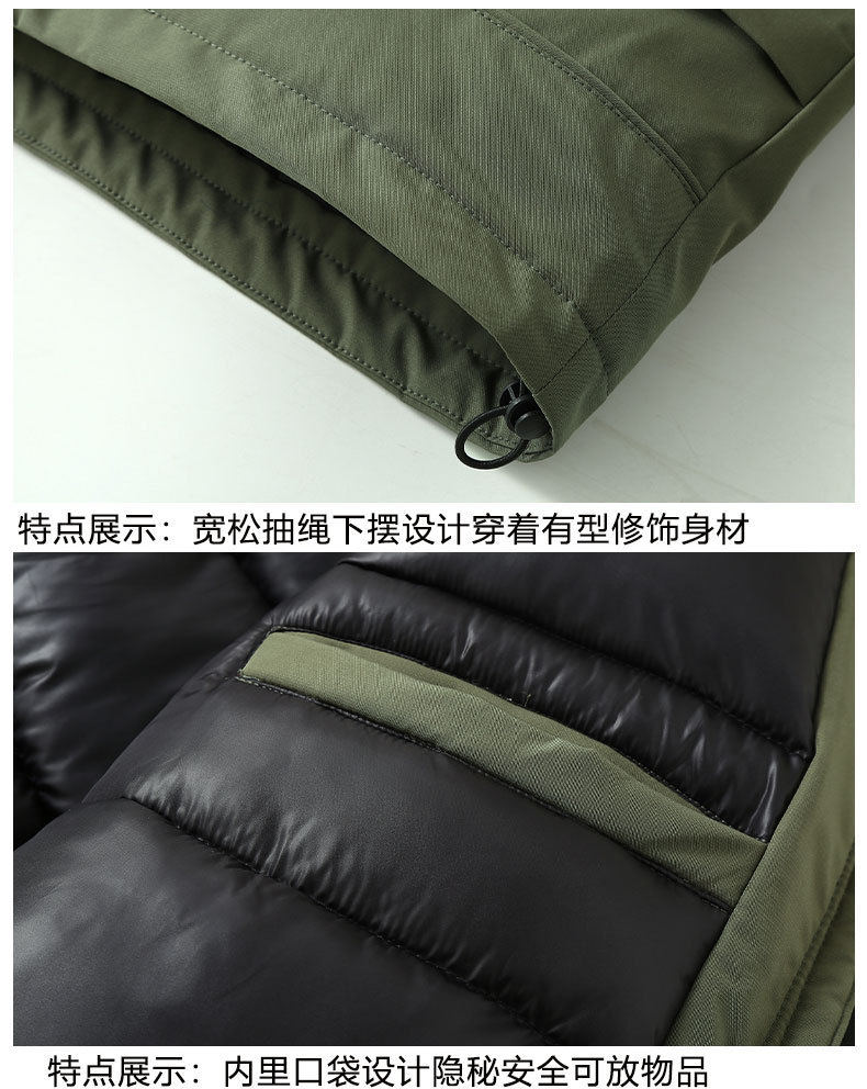 2025新加絨三防冬男性綿服の中の長さは帽子と肥料が厚くなっています。