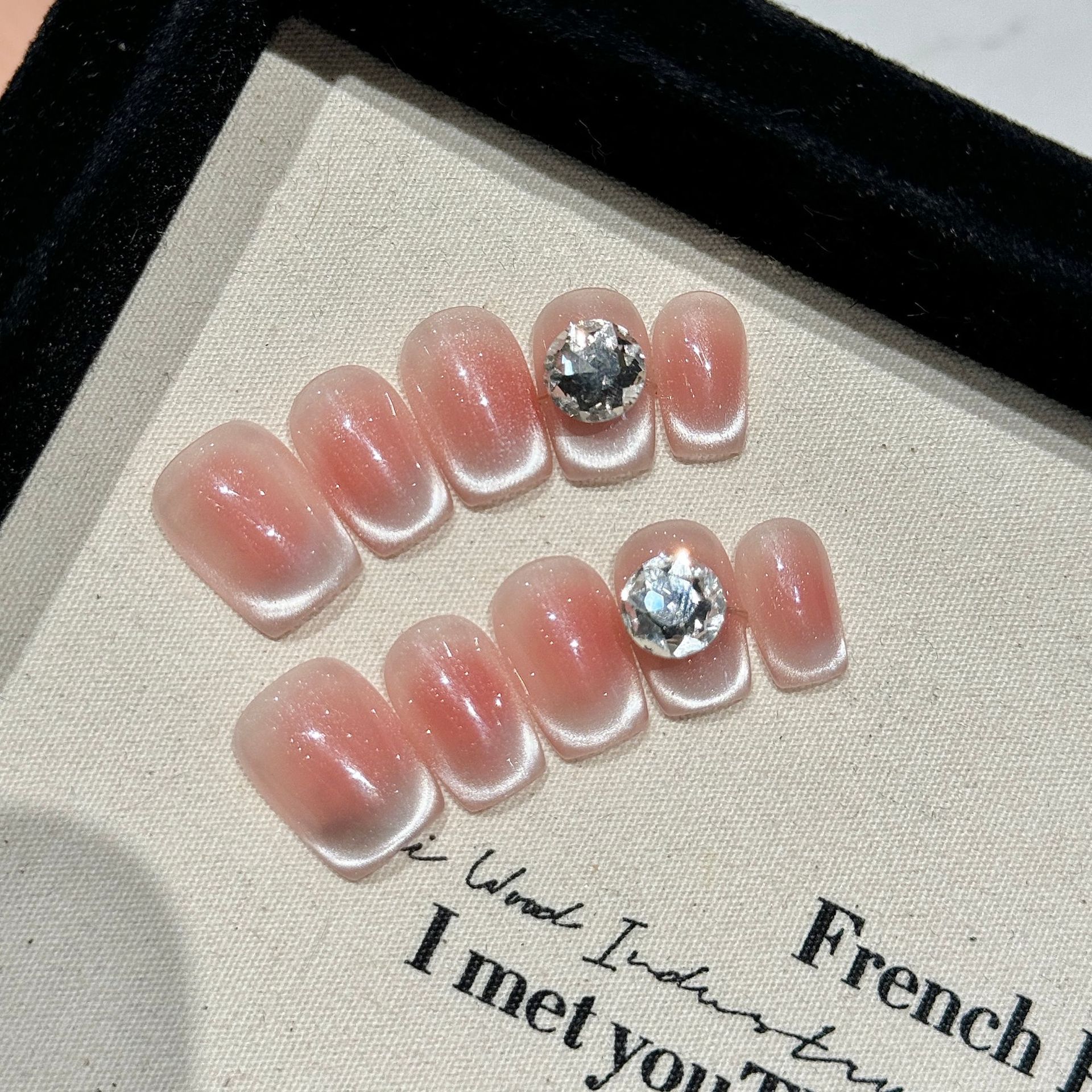 【蜜桃ゼリー】氷透裸色フランス猫眼純手服甲顕白短金ドリル付きネイルシール
