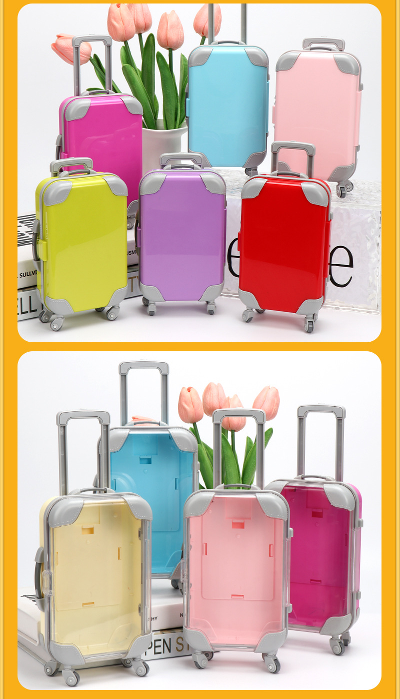 迷你透明拉杆箱 跨境化妆品假睫毛收纳仿真微缩行李箱过家家玩具