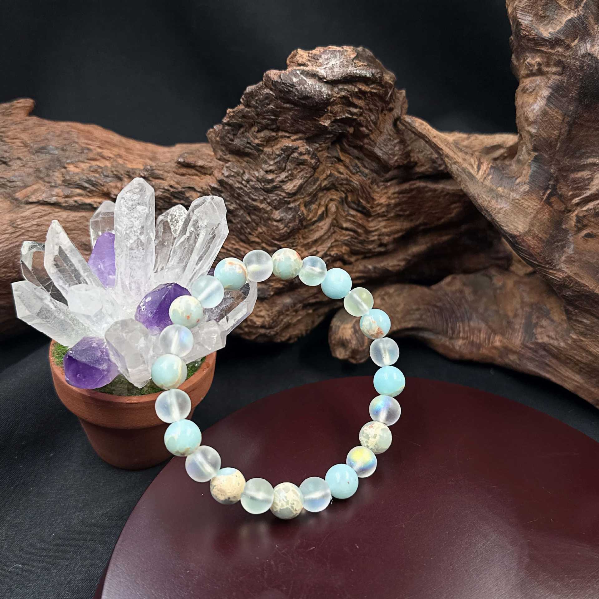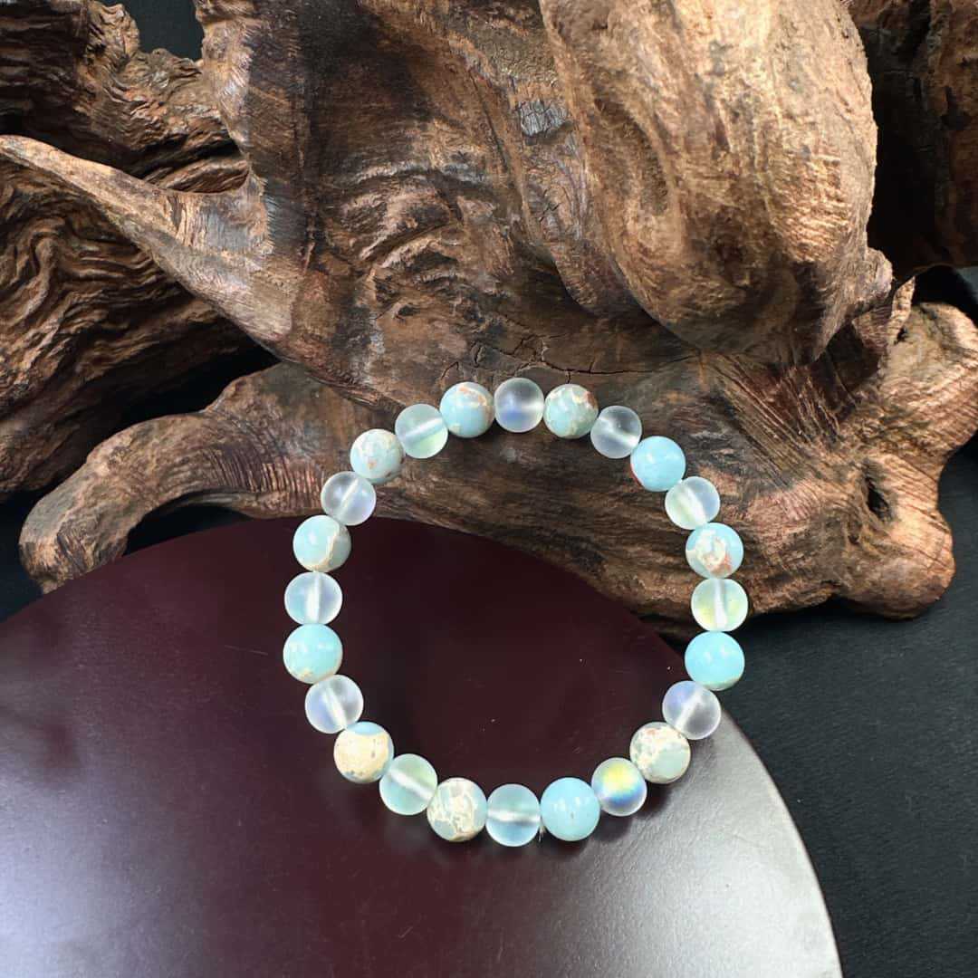 Temu希音TKクロスボーダー爆型ブレスレット寿山石など二種類の天然石手作りストレッチブレスレット