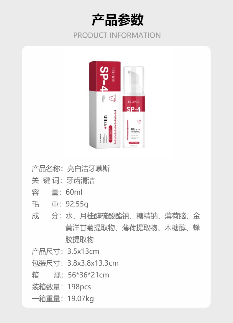 EELHOE明るい白い歯のムースの歯は口腔の異臭の歯の黄色の歯の垢の美歯の口腔の看護をきれいにします。