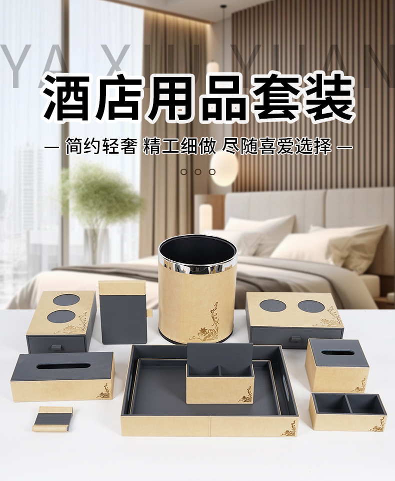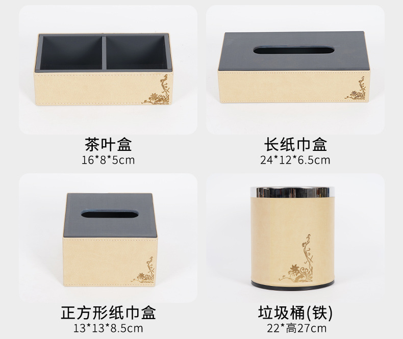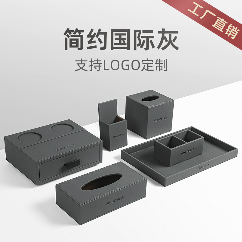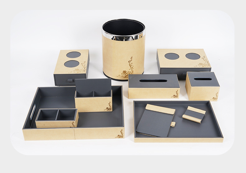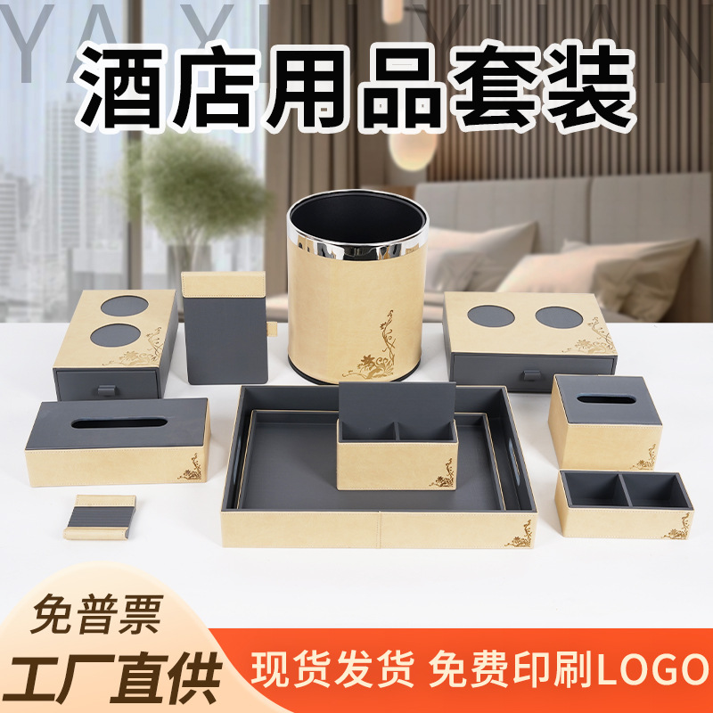 5つ星ホテル向け革製品セット、ペーパータオルボックス、客室雑貨、樹脂製消耗品ボックス、ロゴ印刷可能、軽奢スタイル