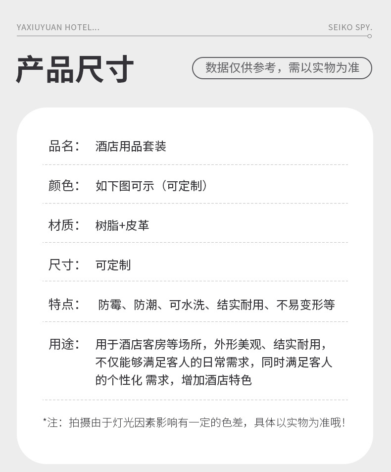 ホテル客室用ソープディッシュ、高級樹脂素材、革製品セット、収納ボックス、雑貨、ロゴ印刷可能、軽奢スタイル