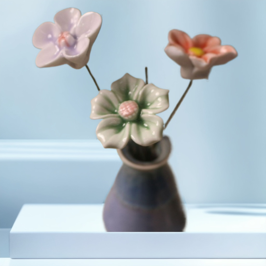 景徳鎮陶磁永生花(茎付き)高温陶磁花 屋台・夜市向け 造花 クリエイティブギフト 文化創意花