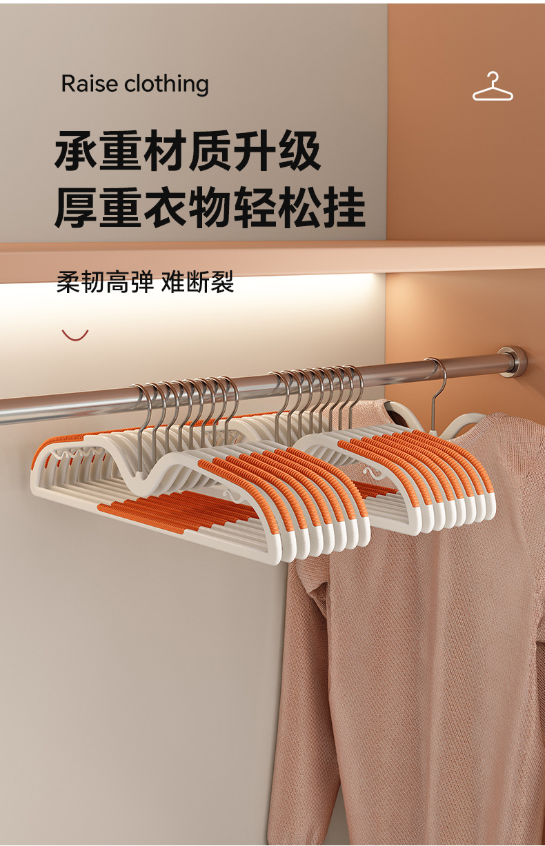 多機能整理整頓用滑り止め植毛衣類ハンガー、乾湿両用プラスチック製衣類ハンガー、家庭用跡が残らないマジックハンガー、物干しハンガー