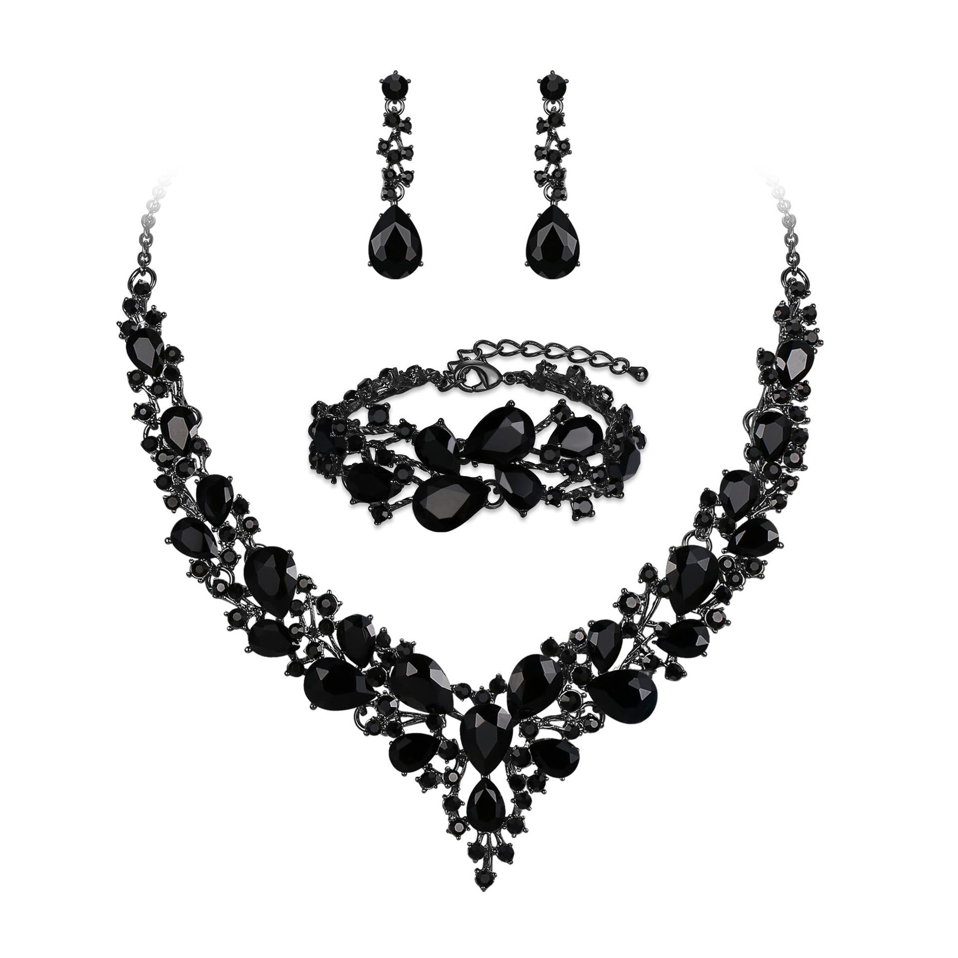 跨境亚马逊新娘水钻水滴项链耳环手链套装奢华套女士舞会宴会配饰