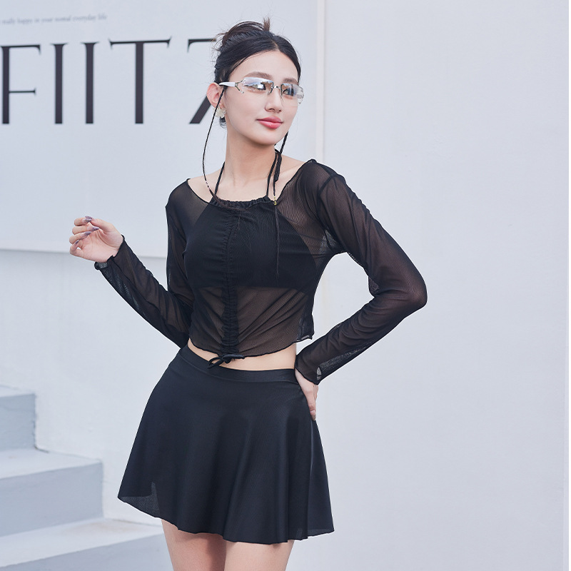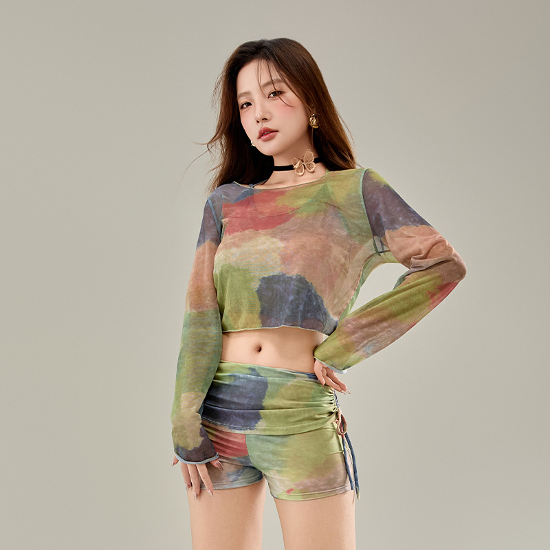 新型の女性は3つのセットを分けて長袖の少女を染めて保守的に肉を遮って砂浜の温泉の休暇の水着の女性の卸売りを覆います。