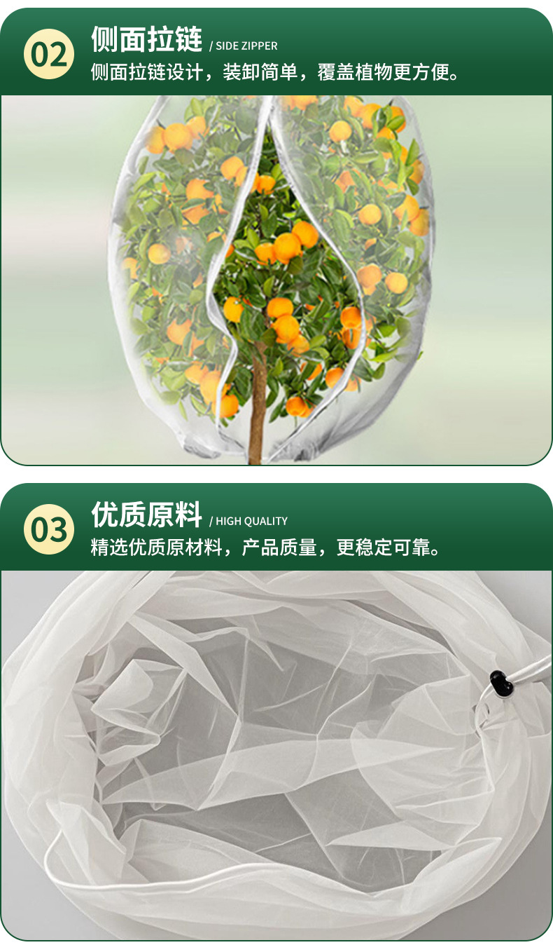 跨境植物防虫罩带拉链抽绳网袋花卉果树防虫网罩绿植保护