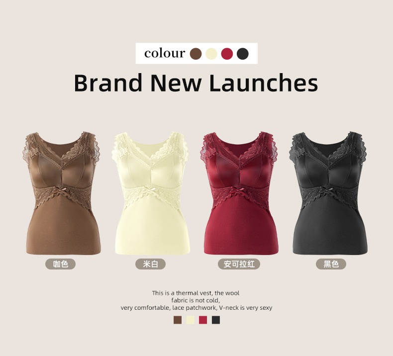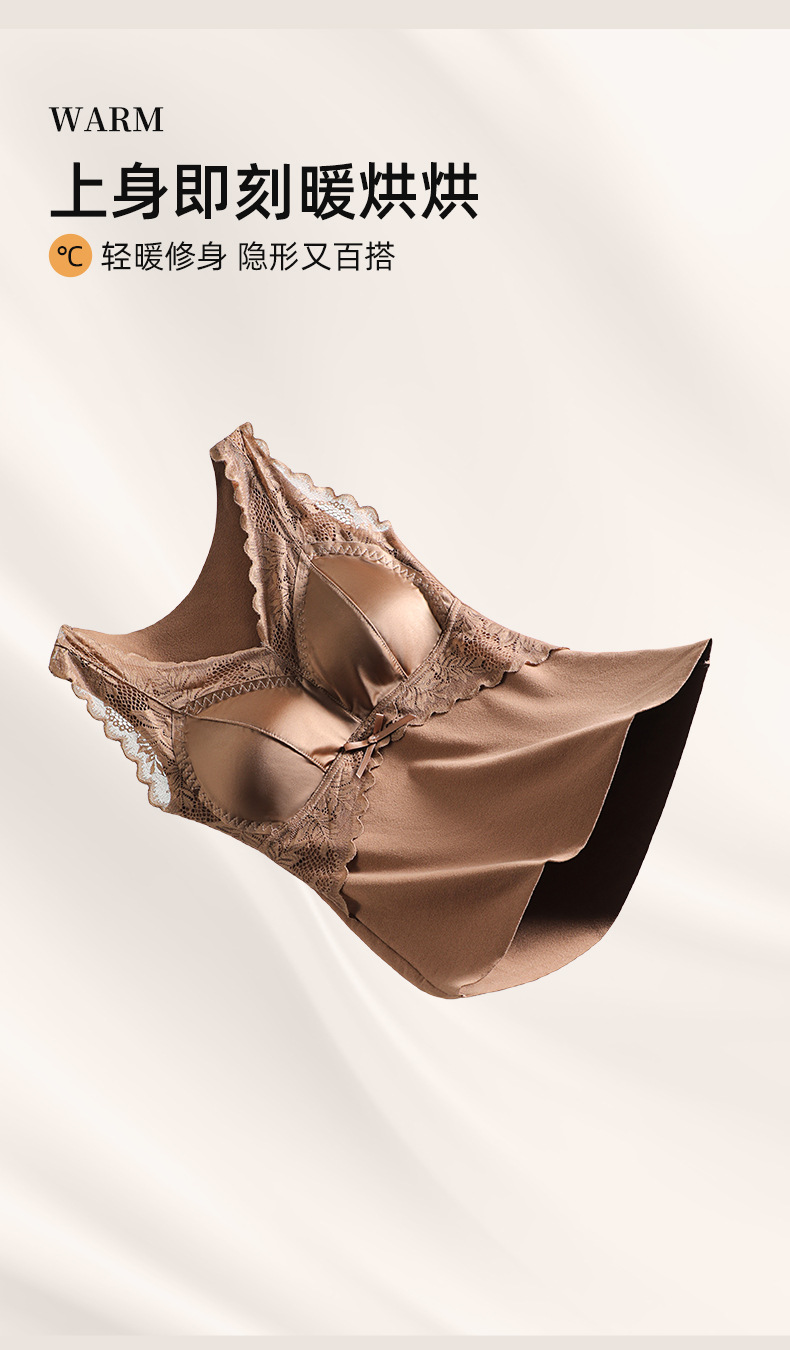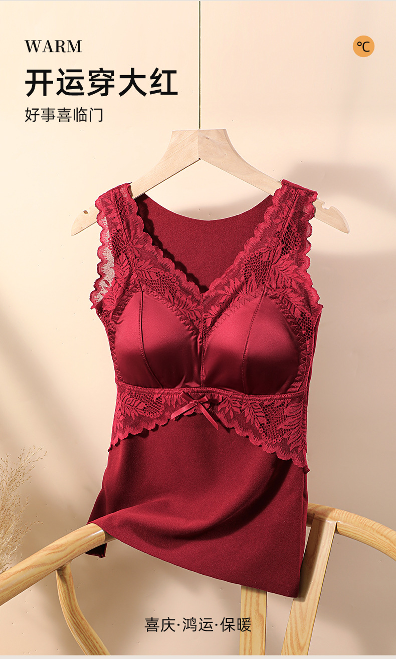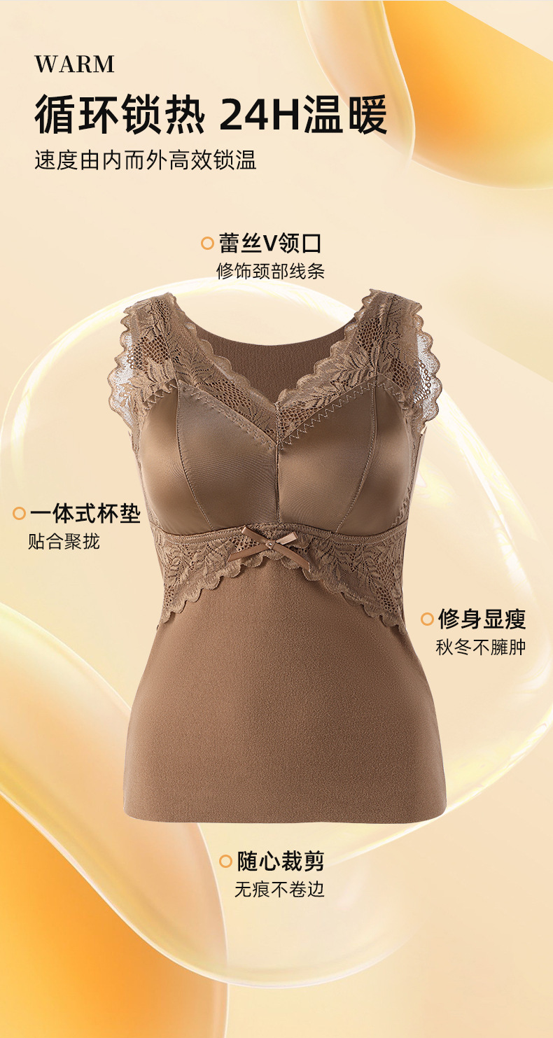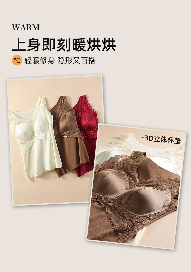 轻奢蕾丝缎面德绒磨毛保暖背心无痕加厚带固定胸垫内搭打底女