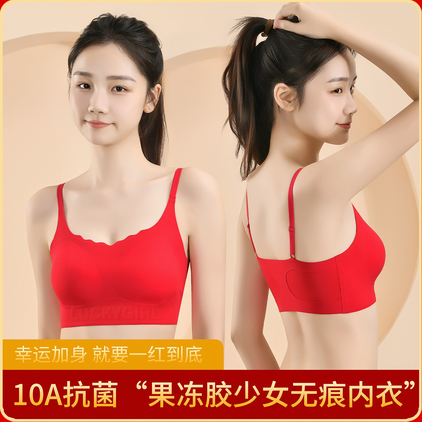 新款本命年红发育期少女粉底液无痕美背文胸细肩带可调节文胸内衣