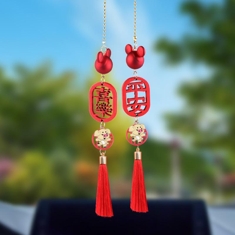 一路平安喜乐汽车挂件车内十二生肖吊饰车载抖音爆款后视镜挂饰女