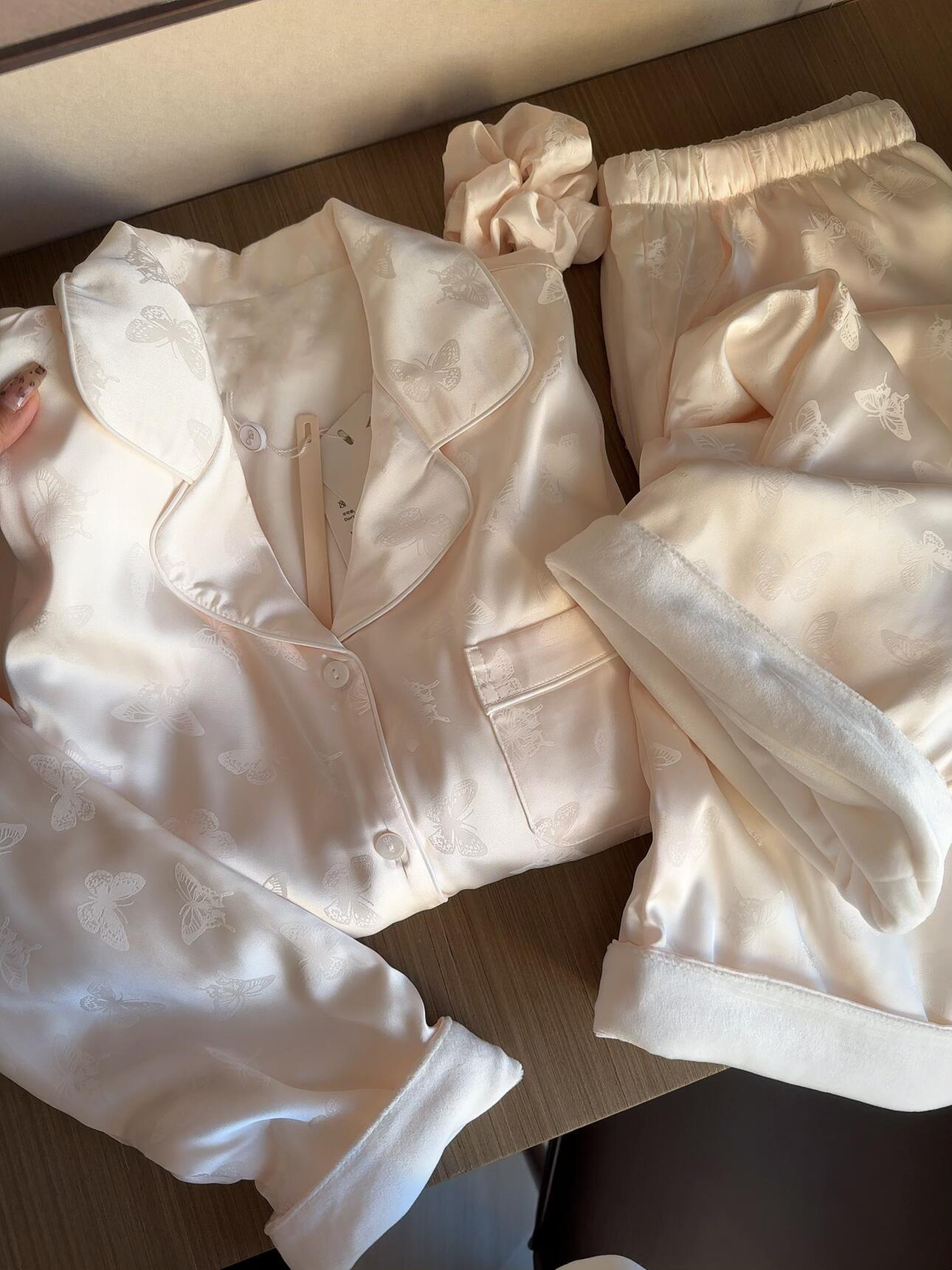 【在庫あり】金糸ベルベットパジャマ レディース 冬 2025年新作 高級 裏起毛 厚手 ホームウェアセット 外出着としても着用可能
