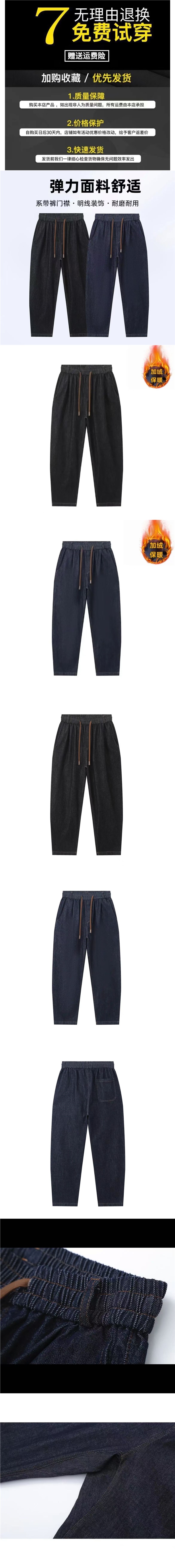同じタイプの【太った兄の福祉】大きいサイズの秋の弾力性の水洗い原色のデニムの明線の耐摩耗性の大きい股のゆったりしているデニム