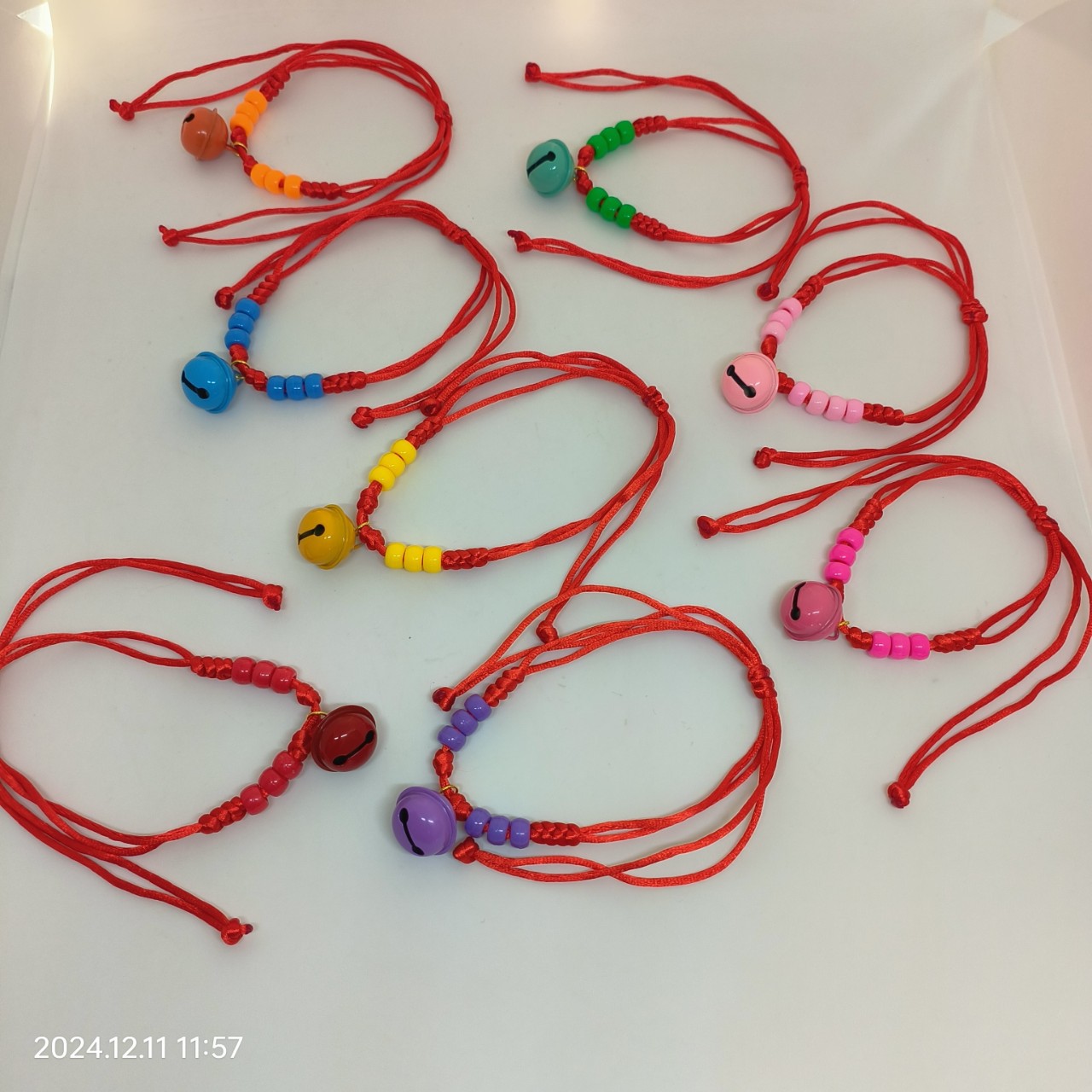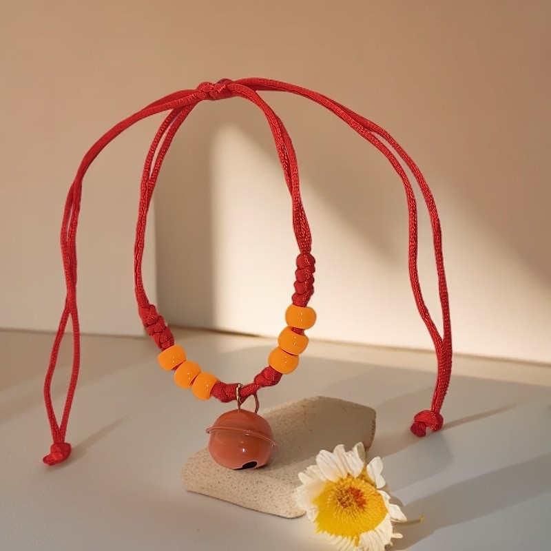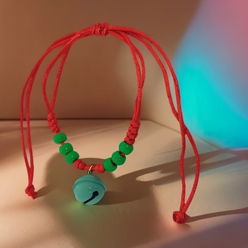 メーカー直販カラービーズ鈴飾りネックレス猫鈴幼犬テディ鹿犬鈴首輪ペンダント