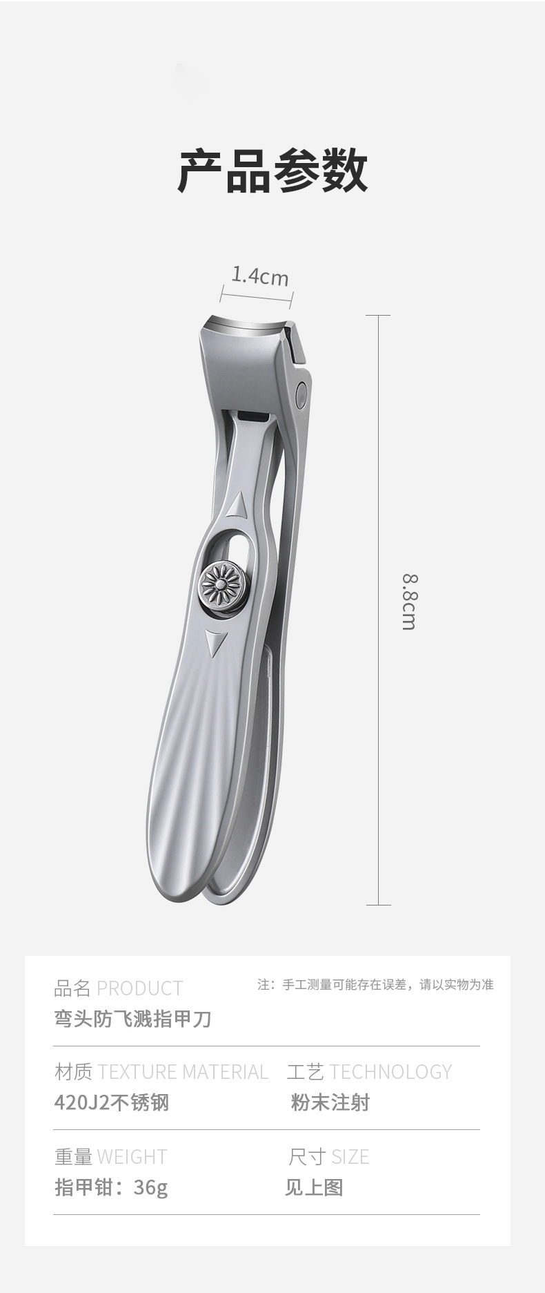 飛散防止ステンレス製爪切り、大開口爪切り、マニキュアセット、携帯用大型シングルカーブ爪切り