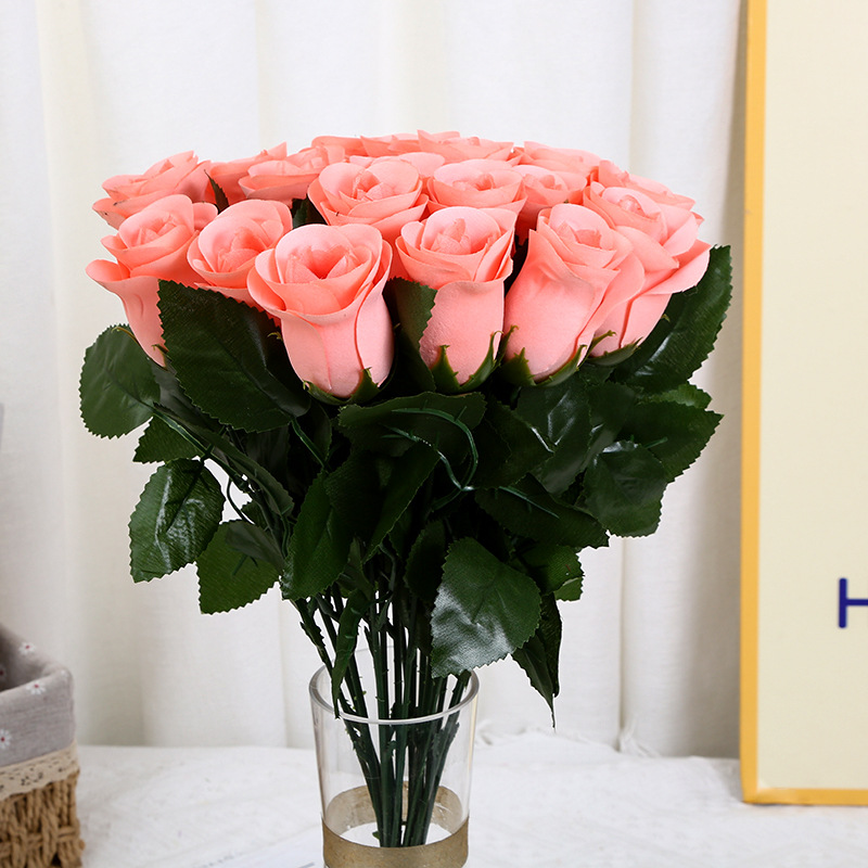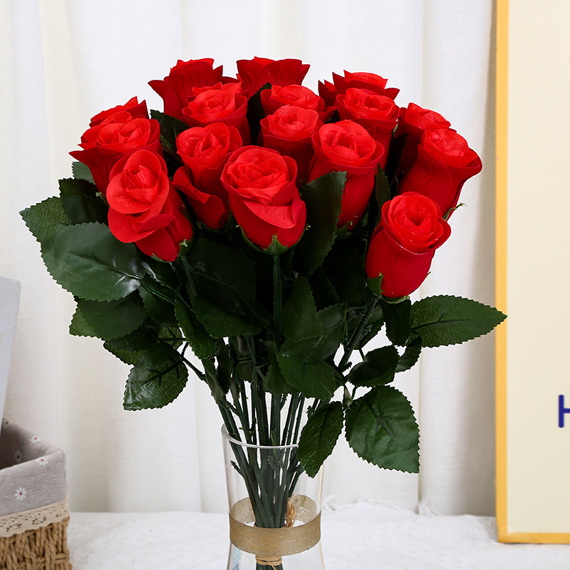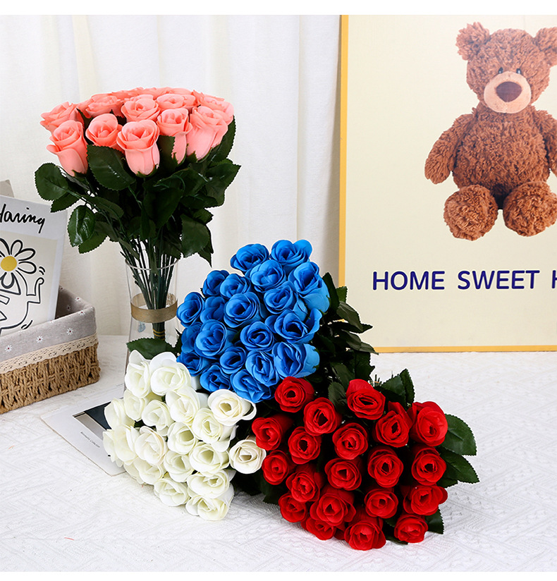 厂家直销仿真花单支小玫瑰花花蕾情人节七夕礼品花束客厅卧室摆放