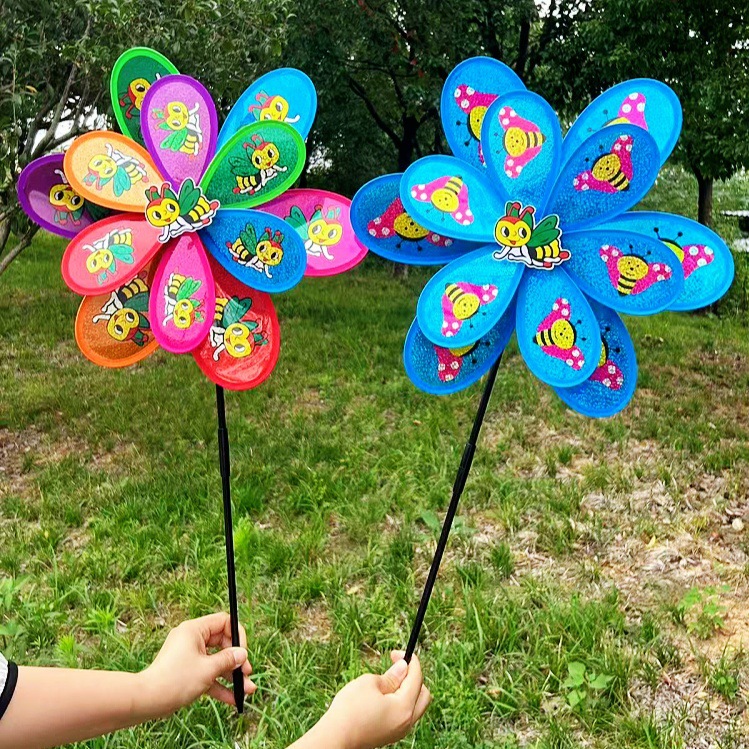 メーカーは国境を越えて人気のあるカラフルなスパンコール昆虫の大規模な二重風車の屋外露店玩具の代理を批判している