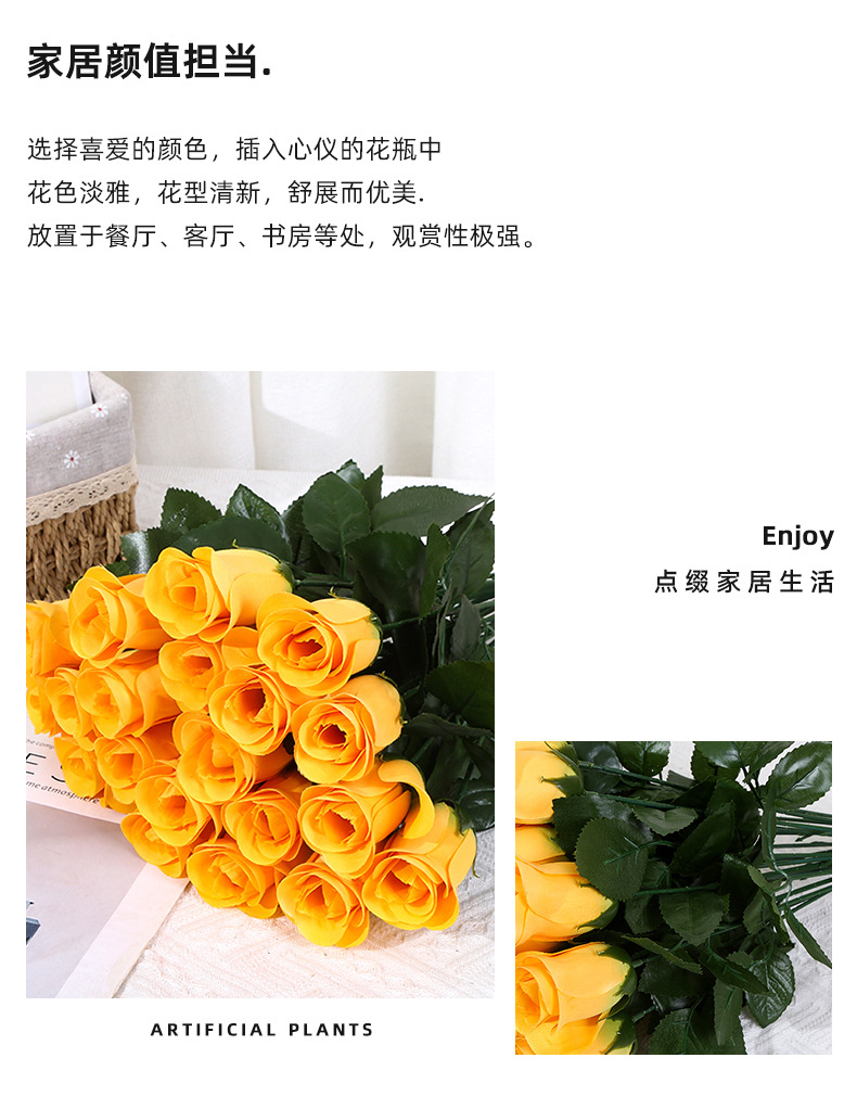 仿真绢花玫瑰花蕾花苞仿真花花束单只玫瑰花仿真花插花花枝把花