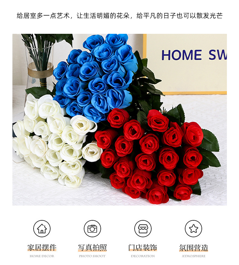 クロスボーダー単枝ベルベットバラ造花絹花バレンタインデー花束高級感結婚祝い装飾用花家庭装飾品