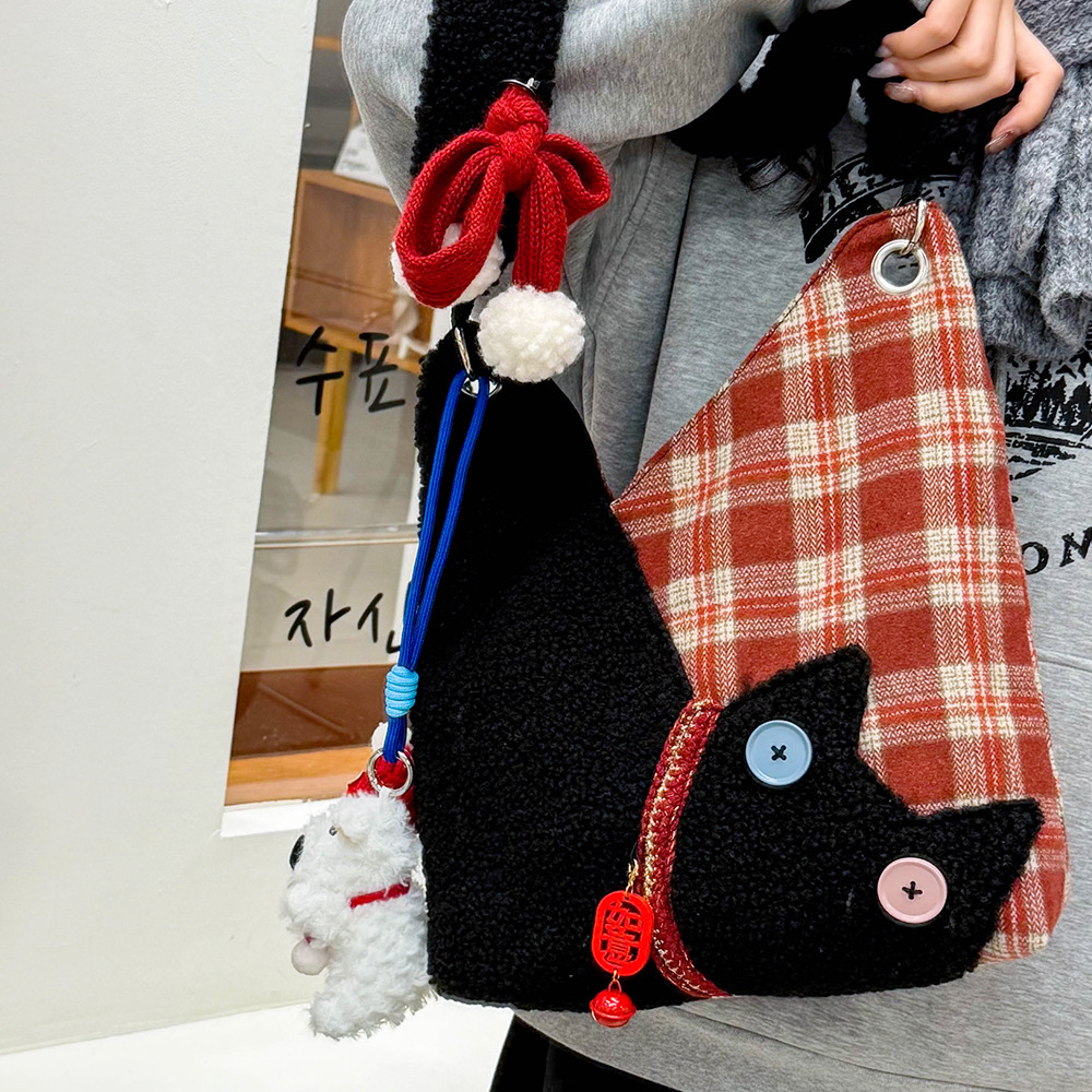 2025秋冬新款包包双面毛呢格子花纹时尚百搭通勤大容量豹纹包包女