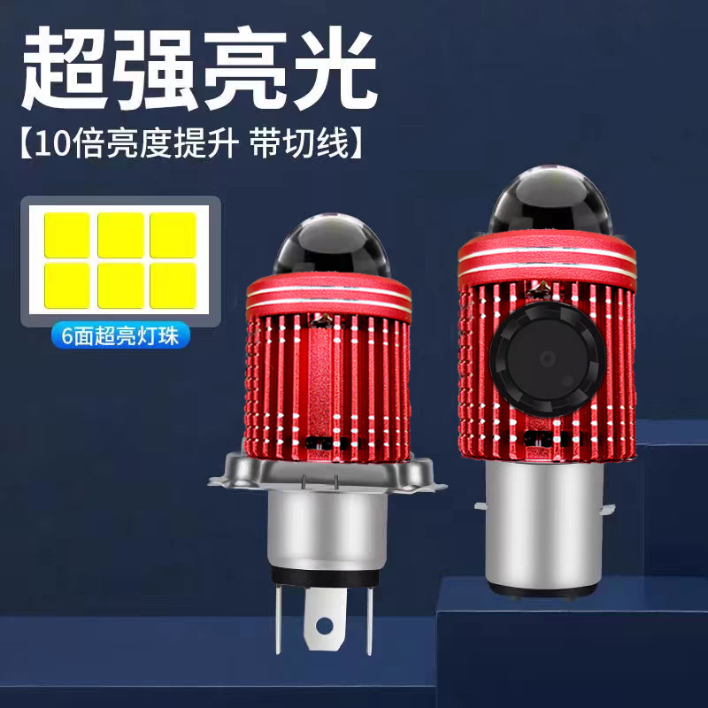 オートバイLEDヘッドライト内蔵魚眼ハイライトレンズファン双爪H4双光電気自動車改造LEDランプ