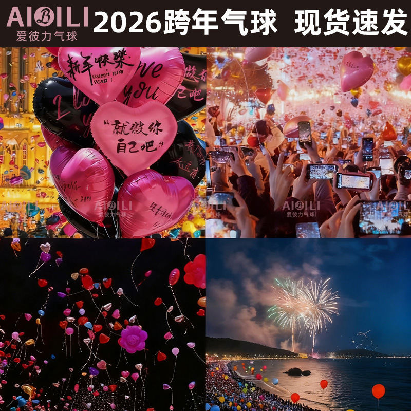 现货2026新年气球爱心气球幸福2026印字气球氦气飘空马年气球批发