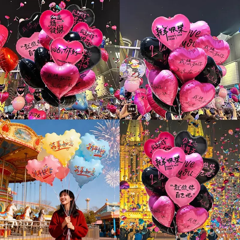 2026年元旦とバレンタインデー用のヘリウム入り風船、18inch個のハート型の誕生日装飾風船