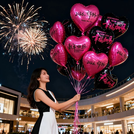 2026你好新年快乐祝福放飞气球18寸爱心订婚表白宴会派对气球批发