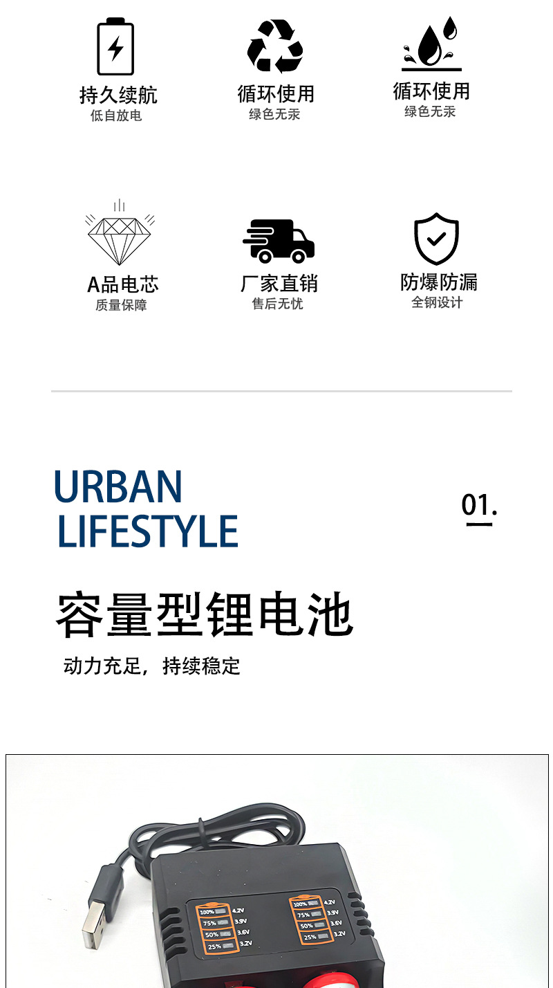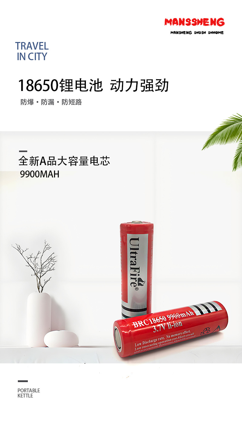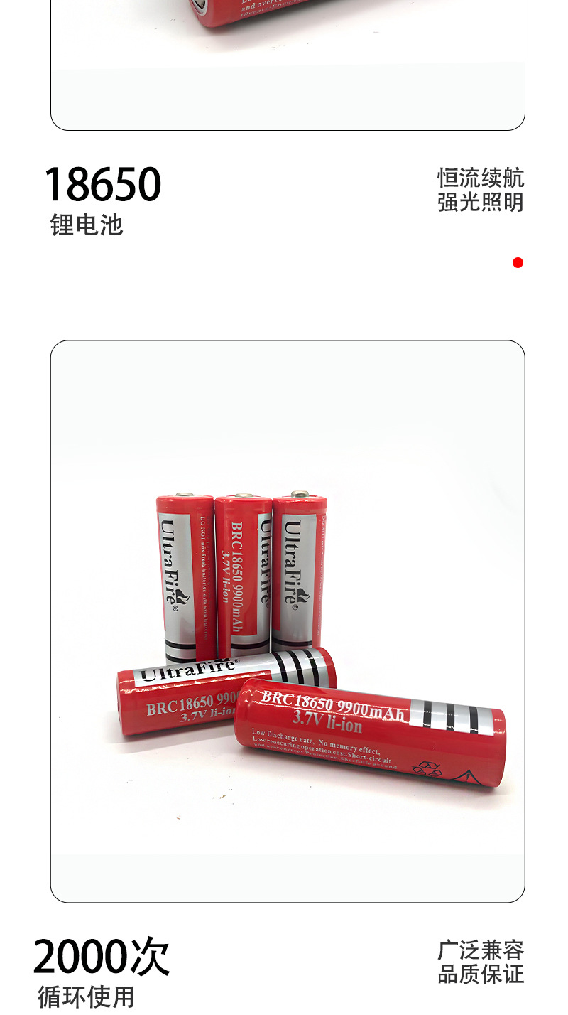 新しい18650リチウム電池6660mAh大容量小ファン3.7v強光懐中電灯充電可能宝電池