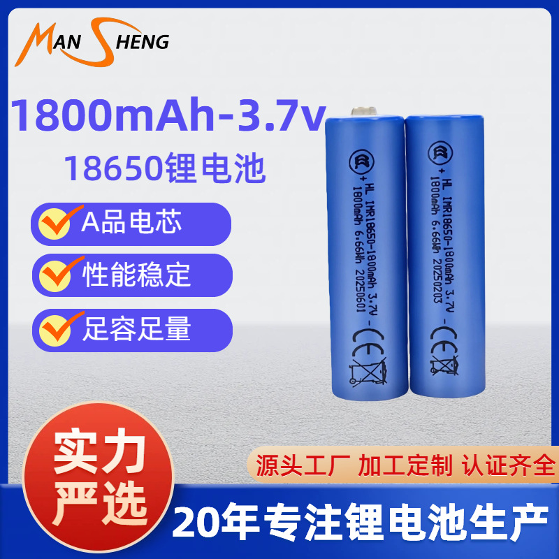 泓力18650锂电池3.7V 1800mah尖头平头可充电适用于头灯手电筒