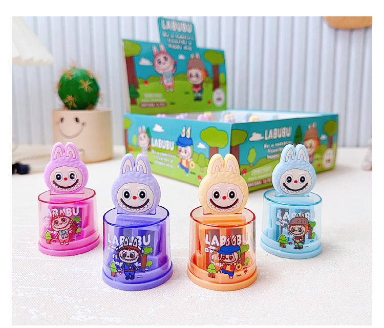 ネットの赤い漫画のlabubuは布の筆を引いて双穴の鉛筆を削って筆の刀の学生の文房具の用品の筆を削ります。