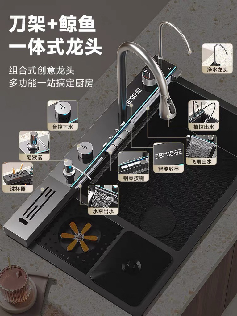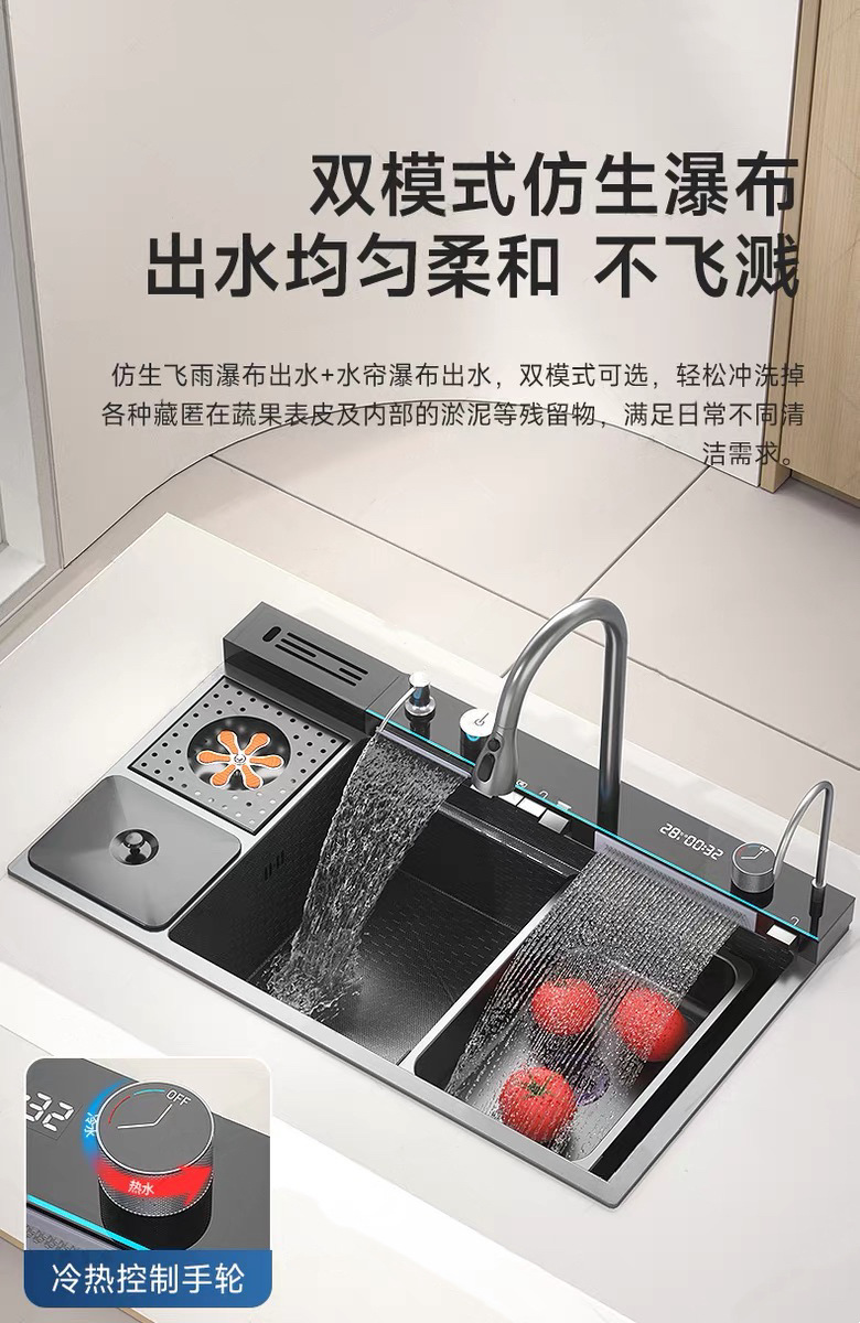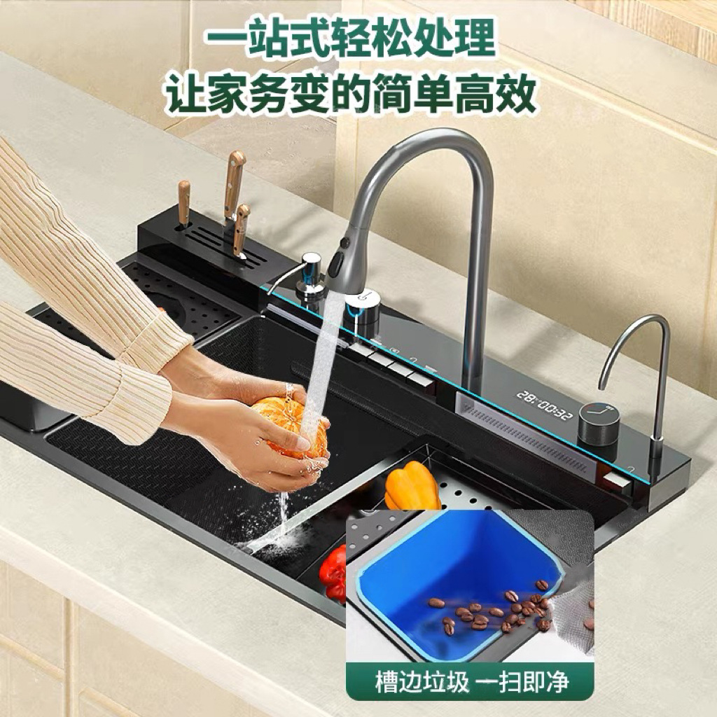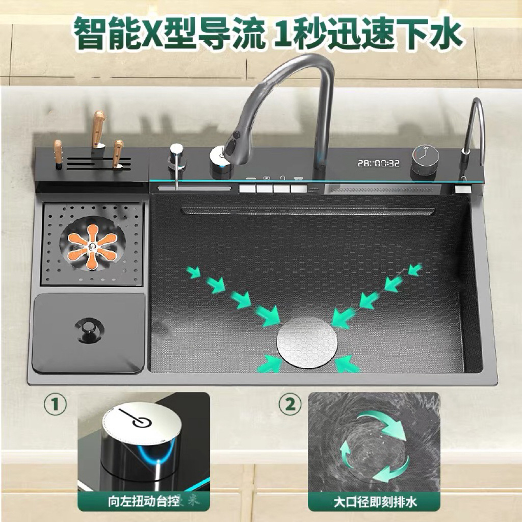 ステンレス鋼のシンククジラレインフォールシンクキッチンステンレス鋼大型シングルスロット多機能デジタルディスプレイシンク