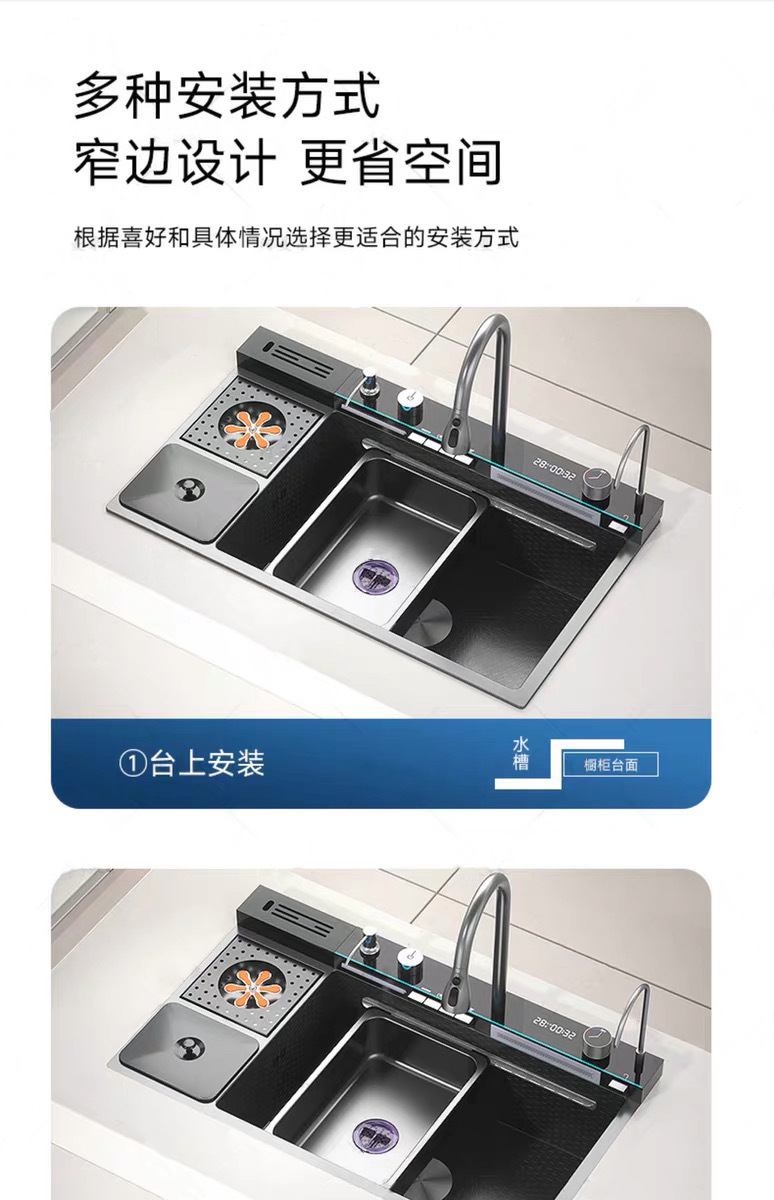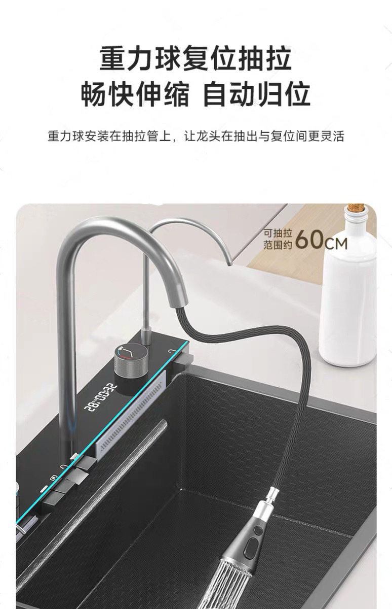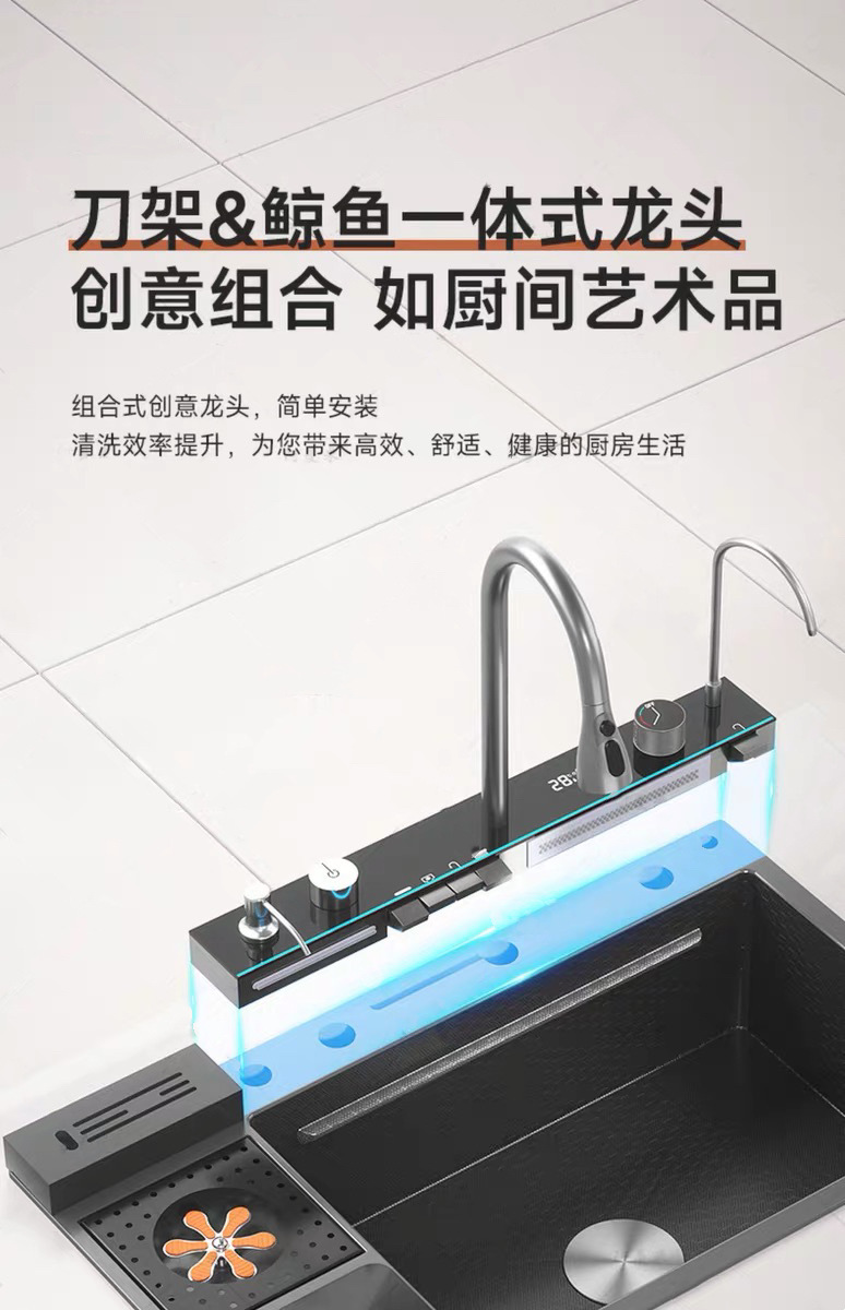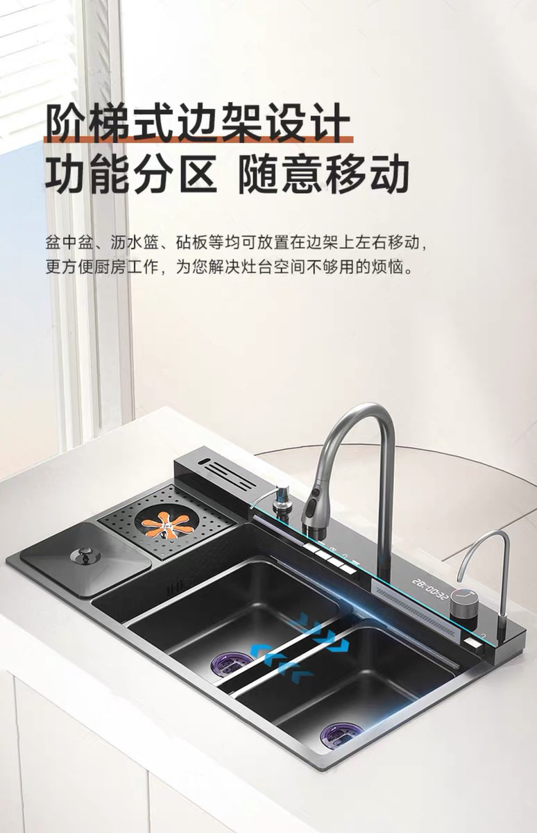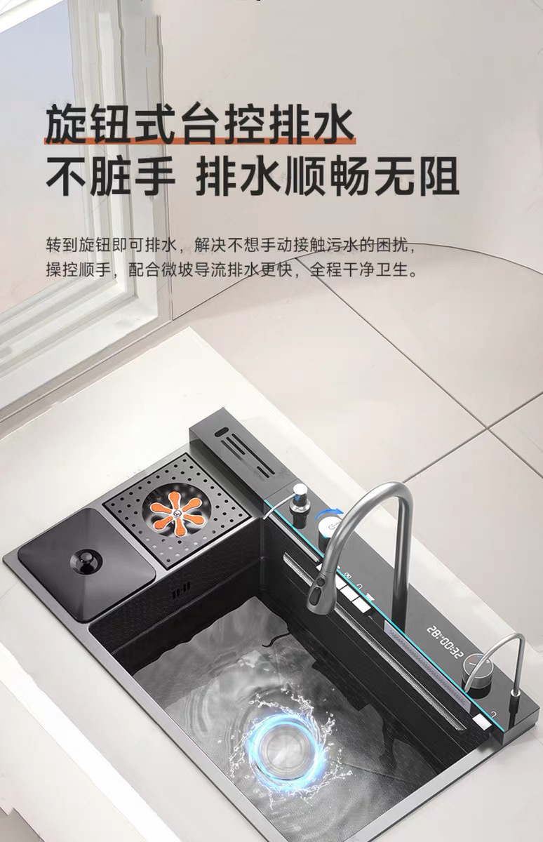 ステンレス鋼のシンククジラレインフォールシンクキッチンステンレス鋼大型シングルスロット多機能デジタルディスプレイシンク