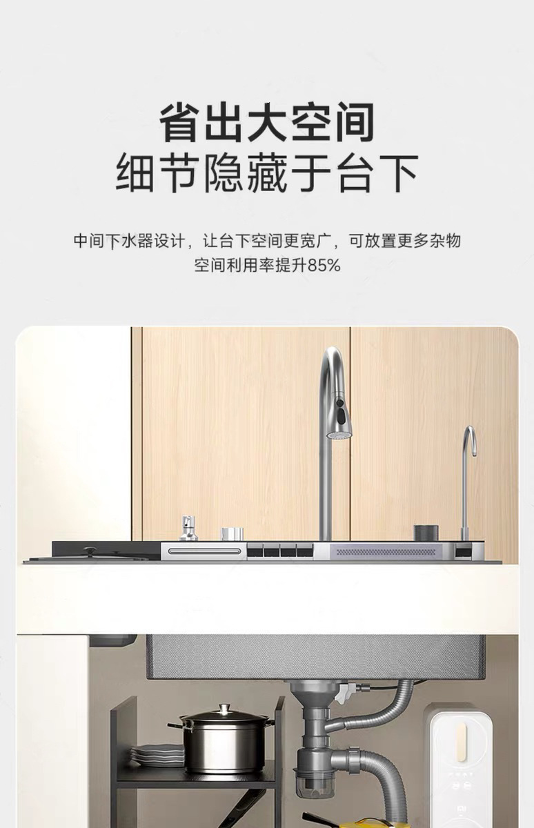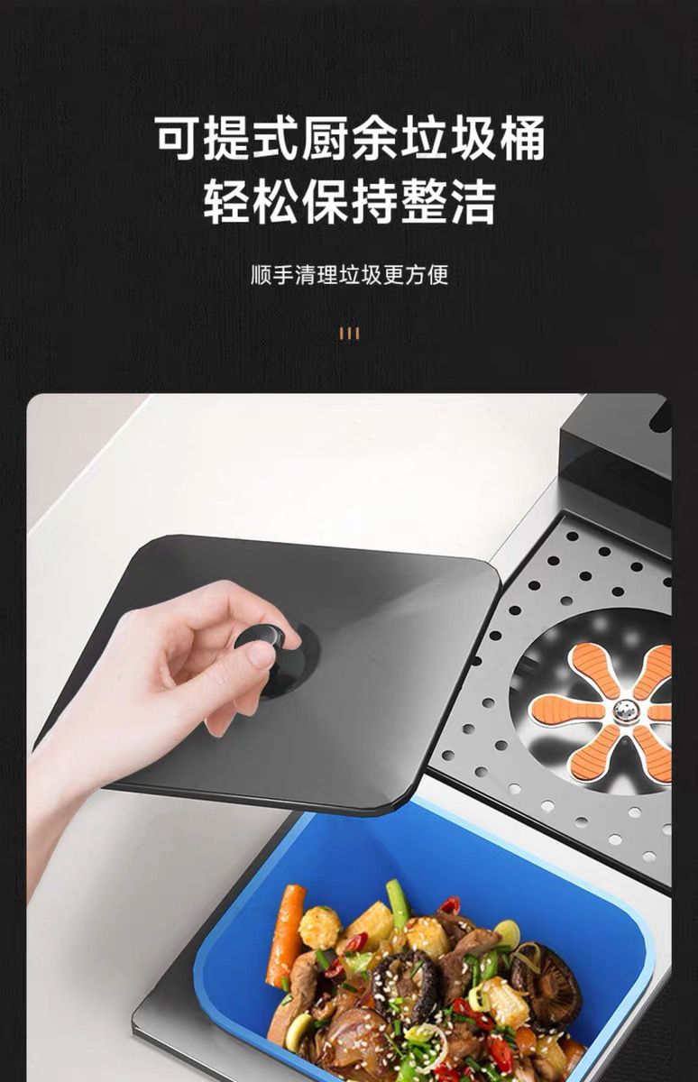 新品鲸鱼大单槽304不锈钢厨房数显水槽带垃圾桶洗菜盆洗菜池