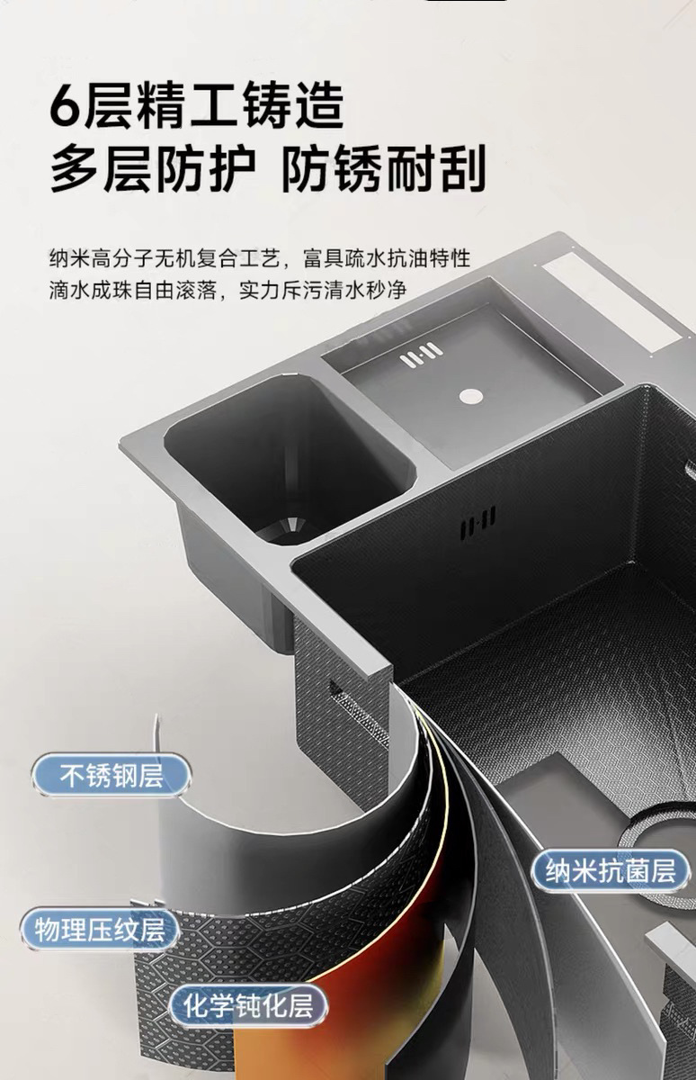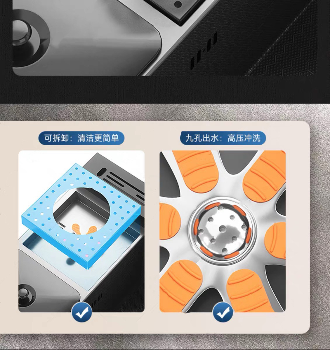 超厚5.0鲸鱼飞雨瀑布304厨房蜂窝水槽单槽数显加厚不锈钢洗菜盆