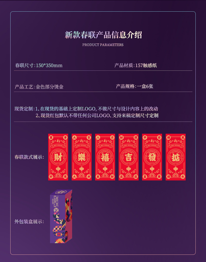 蛇年春節春聯ロット商品の新商品のドアは2025会社の年物のお土産とプレゼントの箱の大紅の紫のアイロン掛けを貼ります。