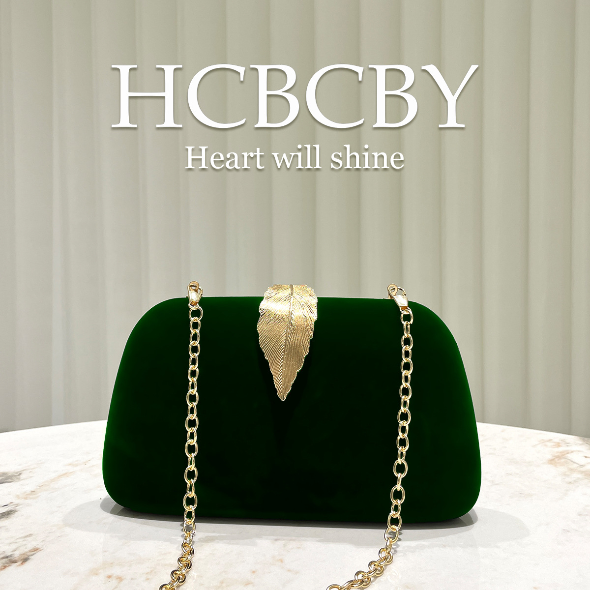 金色格利特树叶印花晚宴包 复古优雅叶子搭扣 名媛时尚气质手拿包