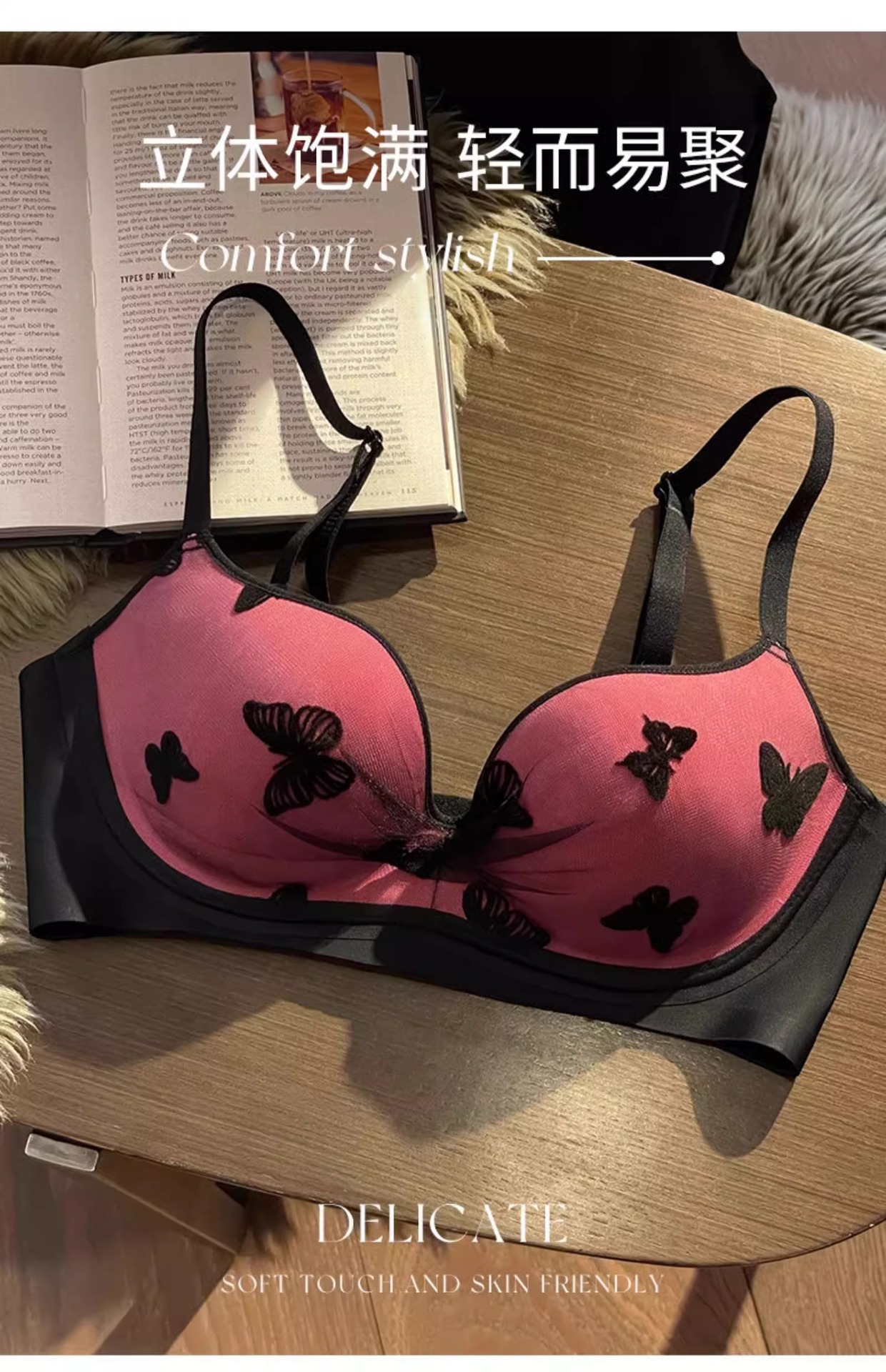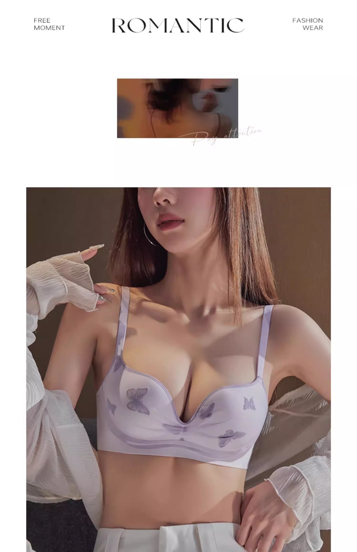無痕ラテックスは下着の女性の胸を寄せて大きなゼリーを見せます。
