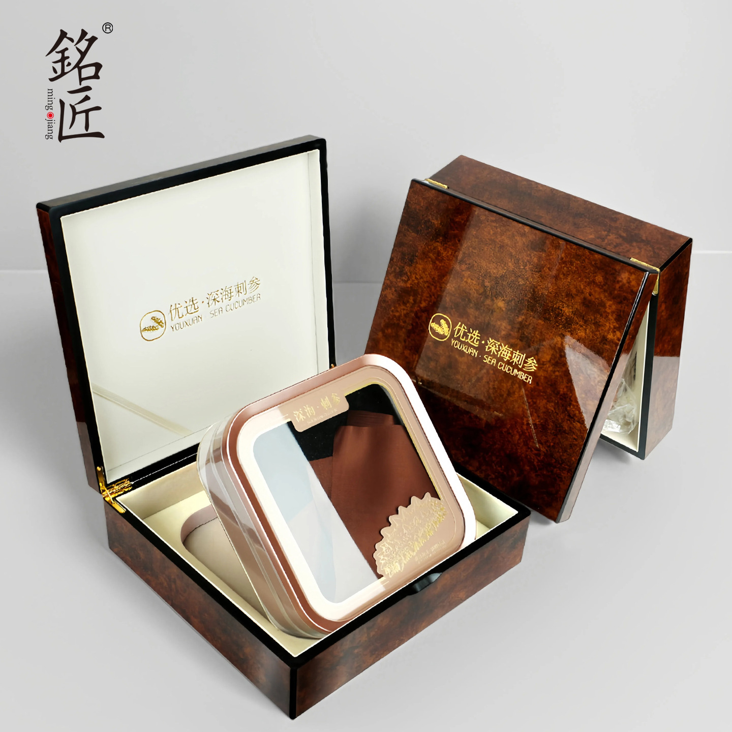 海参包装盒一斤装高档木纹钢琴漆面海刺参礼盒空盒干海参礼品盒子