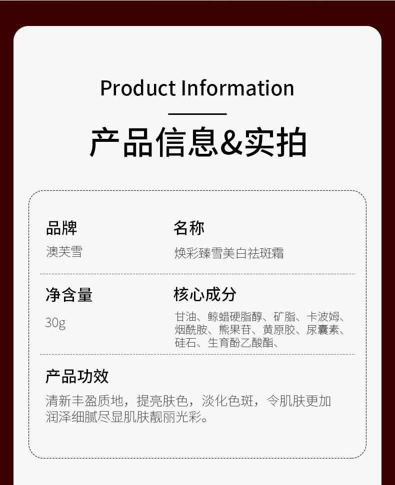 製品仕様 オーフス 377 そばかすクリーム 30g-(レッド),Jifengtang 377 クリア&保湿 5 層美白・そばかす防止クリーム 30g