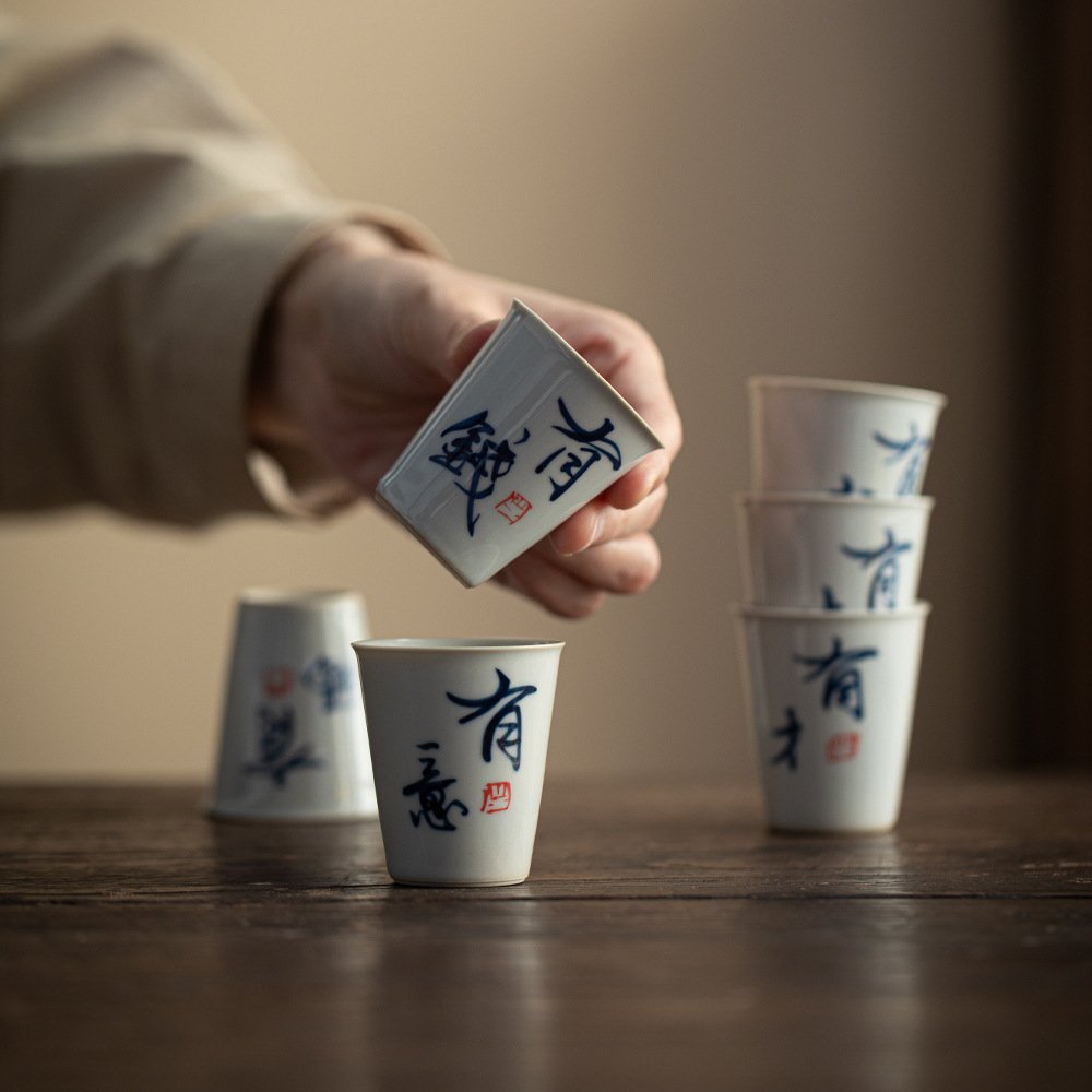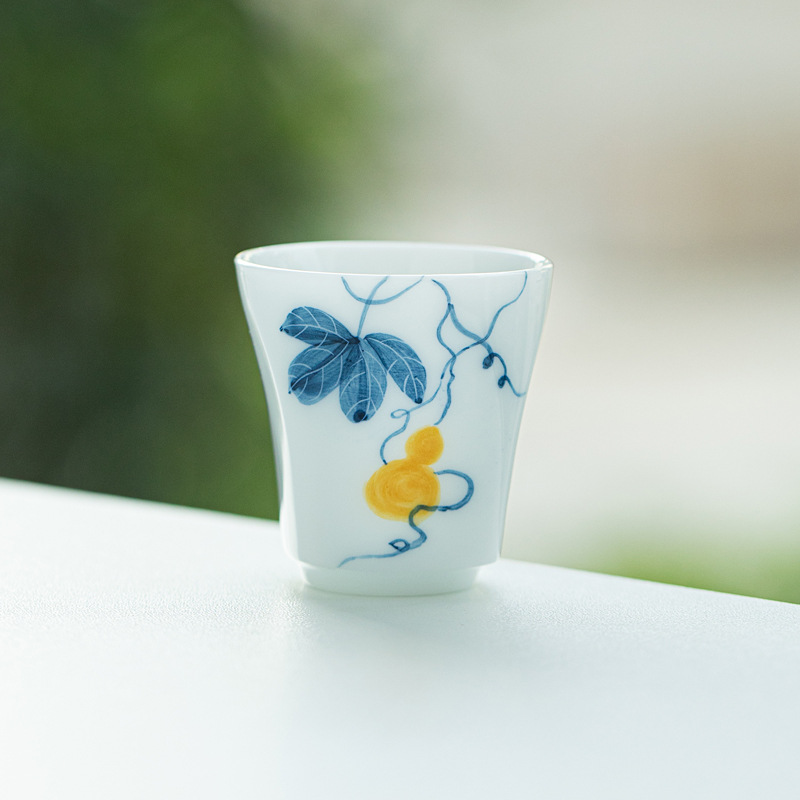 泥人叙氷種玉磁器手描きひょうたん四方カップ釉薬下彩高白磁器家庭用主人カップ単杯