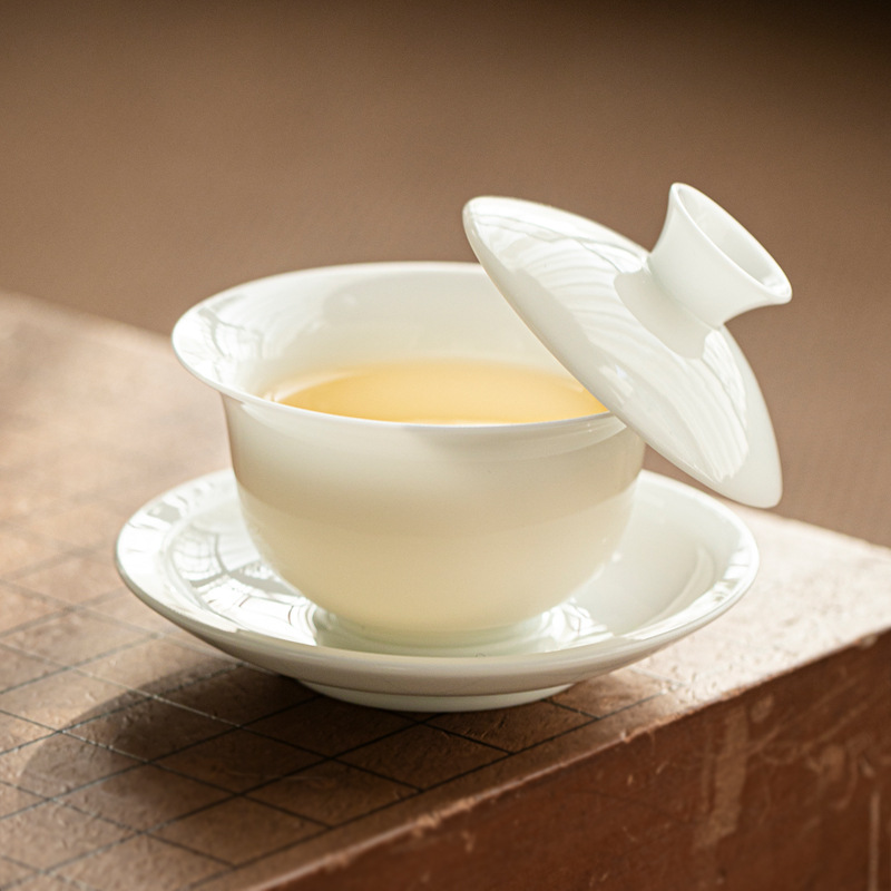 ホバーリングアイスジェイドホワイト磁器三才蓋碗高級功夫茶器茶碗家庭用新型セラミック耐熱茶碗