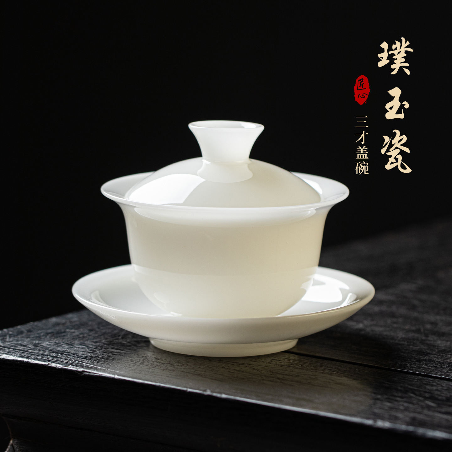 德化高端璞玉瓷悬停三才盖碗冰种白瓷家用防烫泡茶碗功夫茶具茶杯