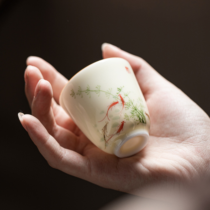 釉薬の下の色彩の手描きの描金のプーアル杯の工夫の茶器の田園のハスの花の魚の劇の主人の杯の家庭用品の茗杯のお茶の杯