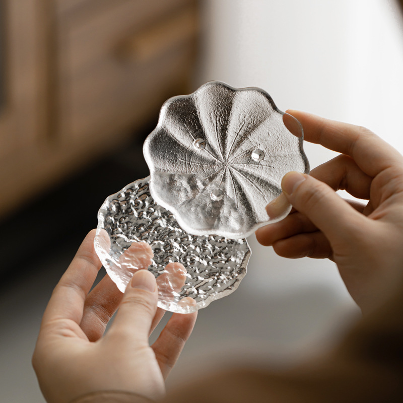 日本式ガラス氷河花弁カップマット透明厚手ティーカップアクセサリー高颜値カップトーティーティースペース茶器