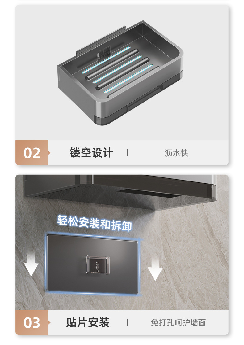 吸盘肥皂盒壁挂式太空铝卫生间置物架浴室香皂盒沥水架洗漱台收纳