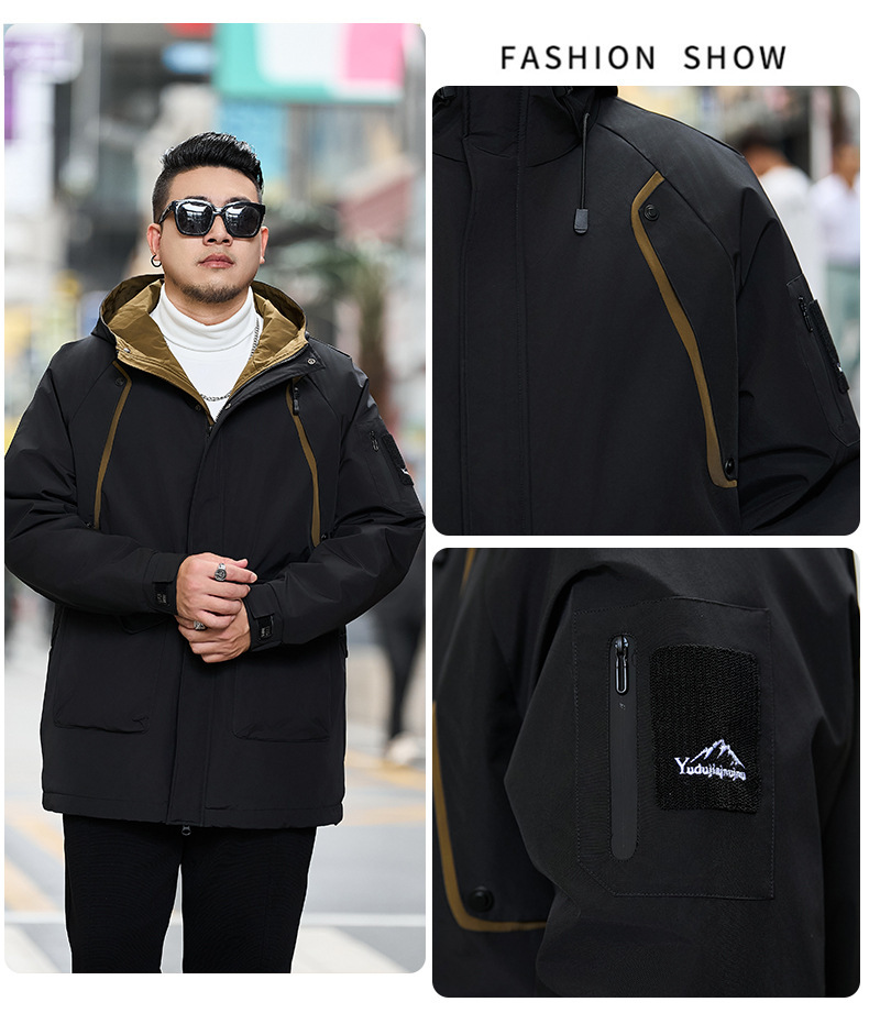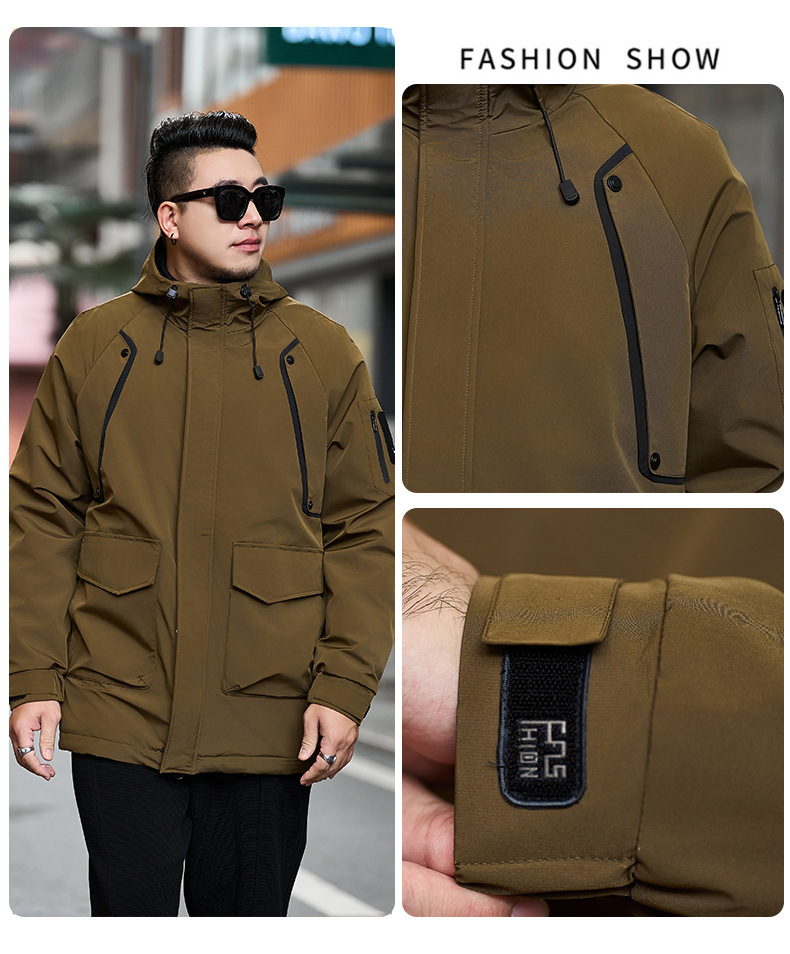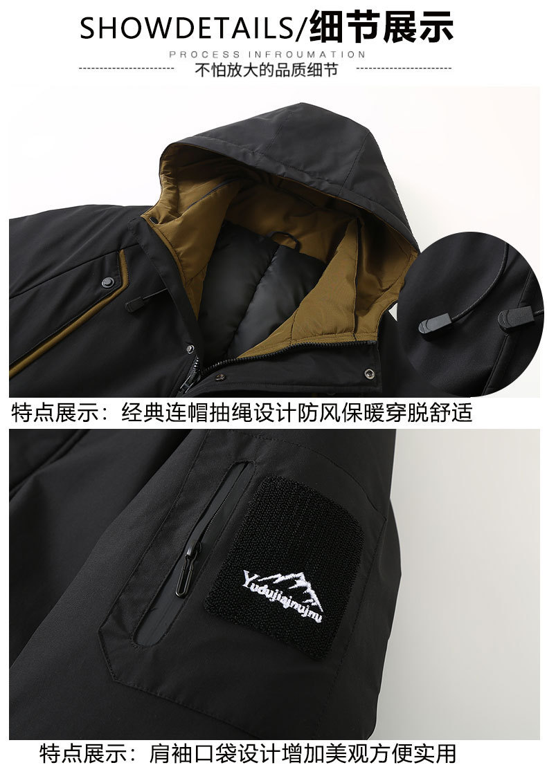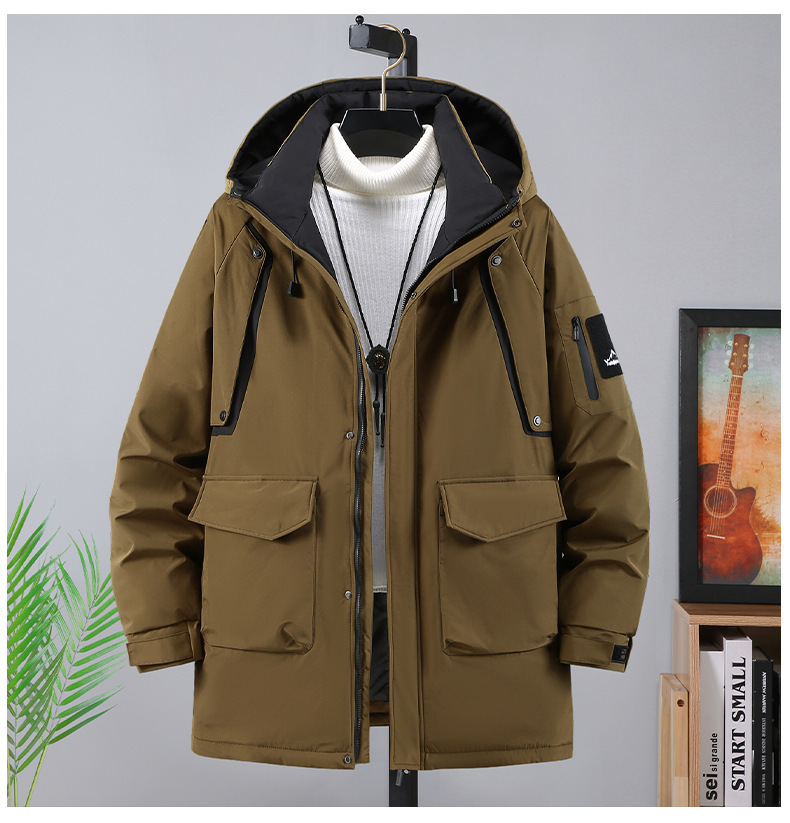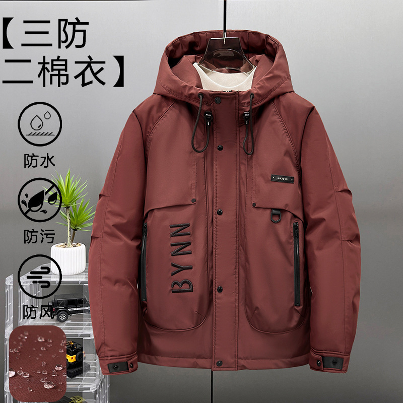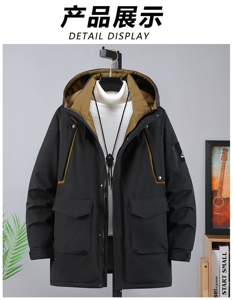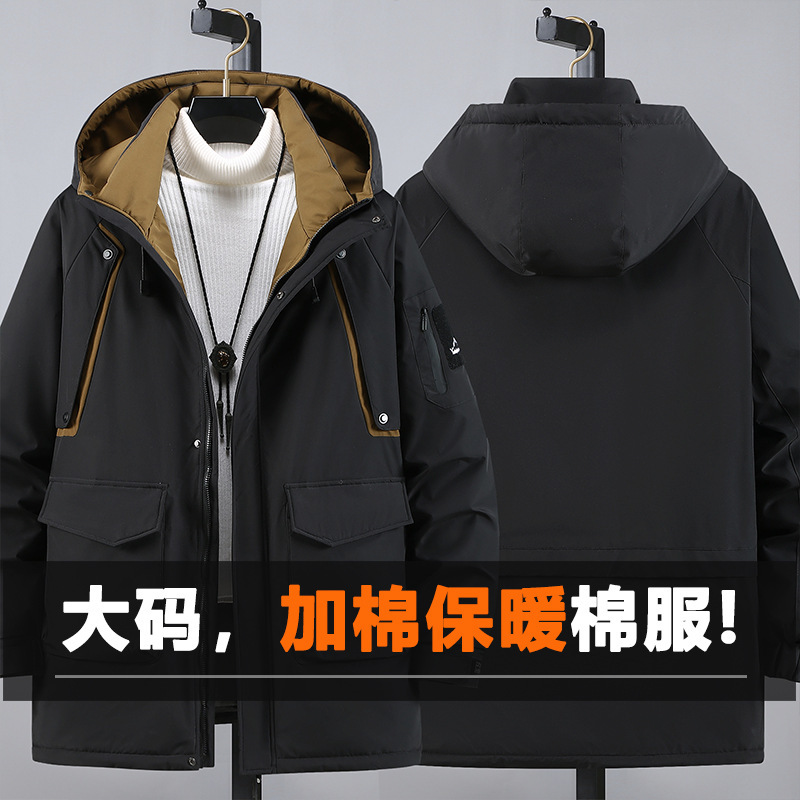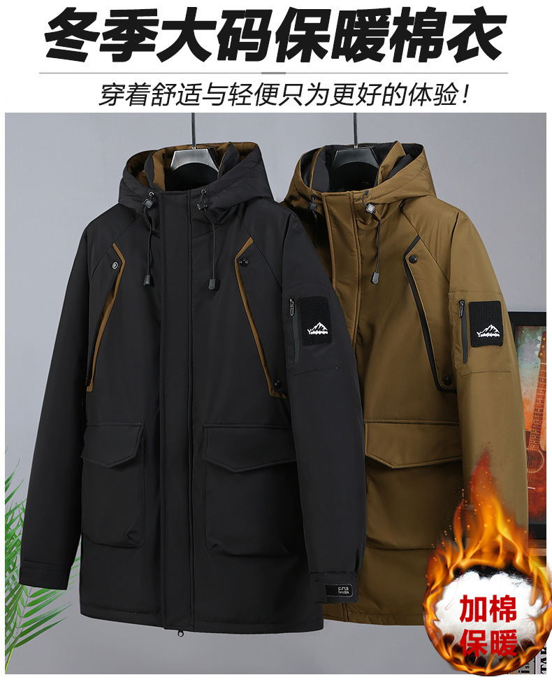 2025新加絨三防冬男性綿服の中の長さは帽子と肥料が厚くなっています。