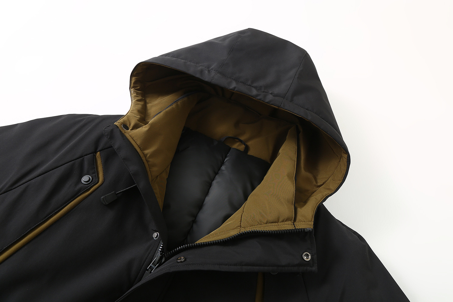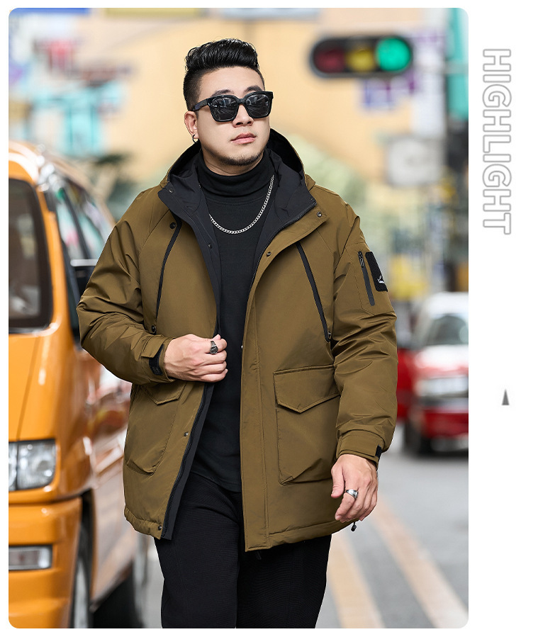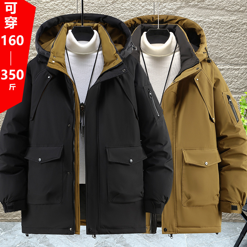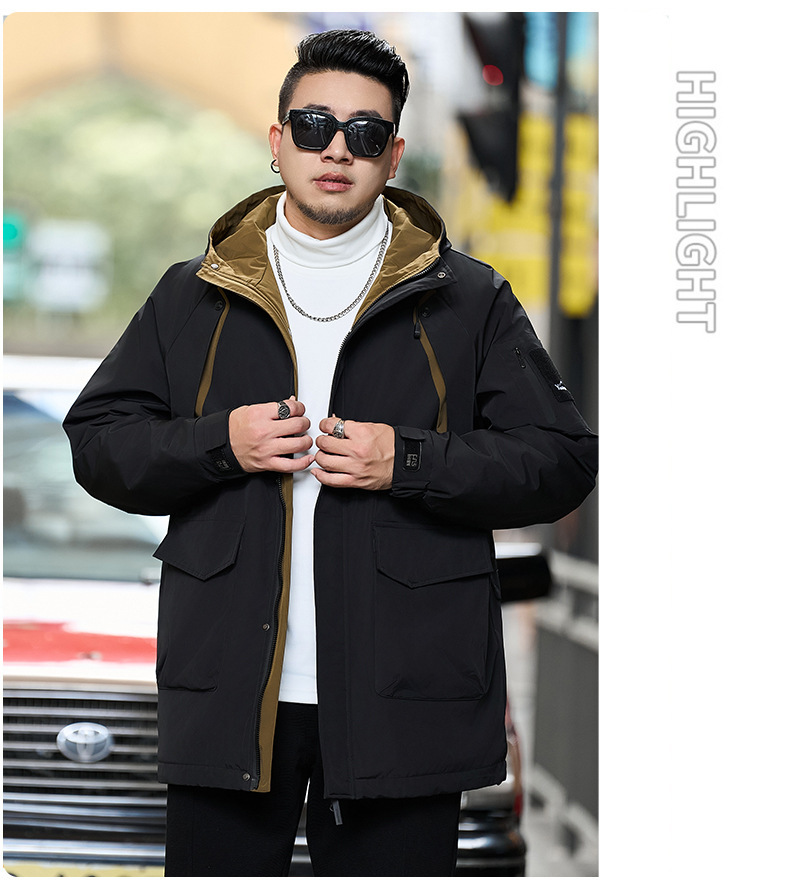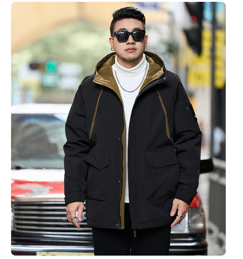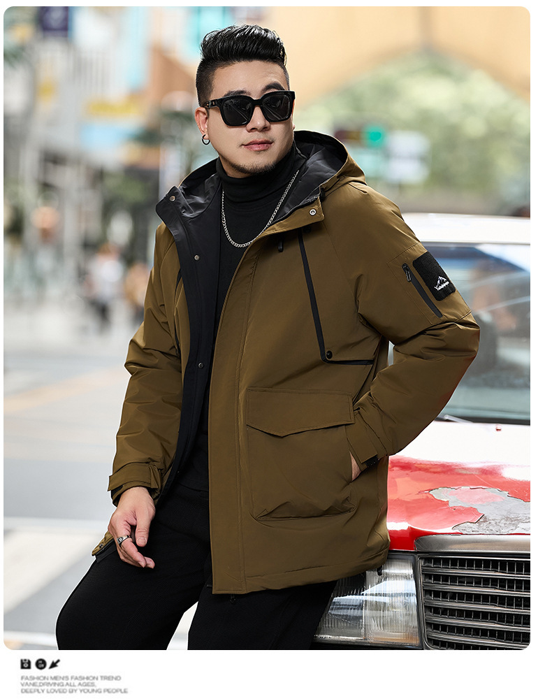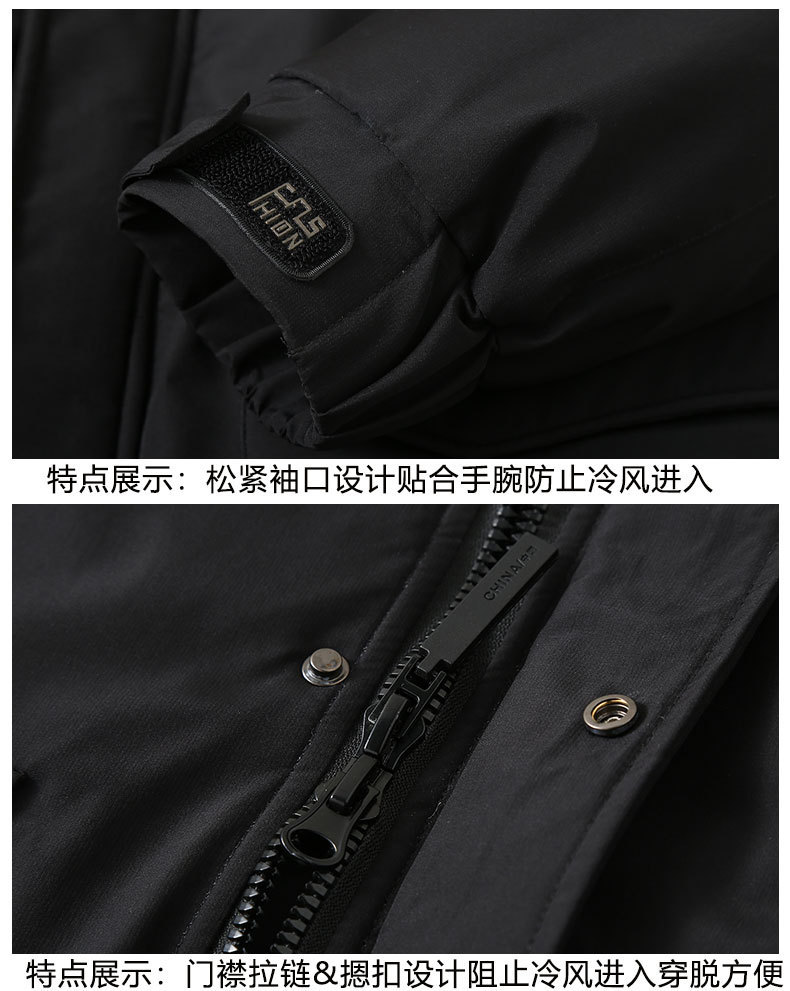 2025新加絨三防冬男性綿服の中の長さは帽子と肥料が厚くなっています。