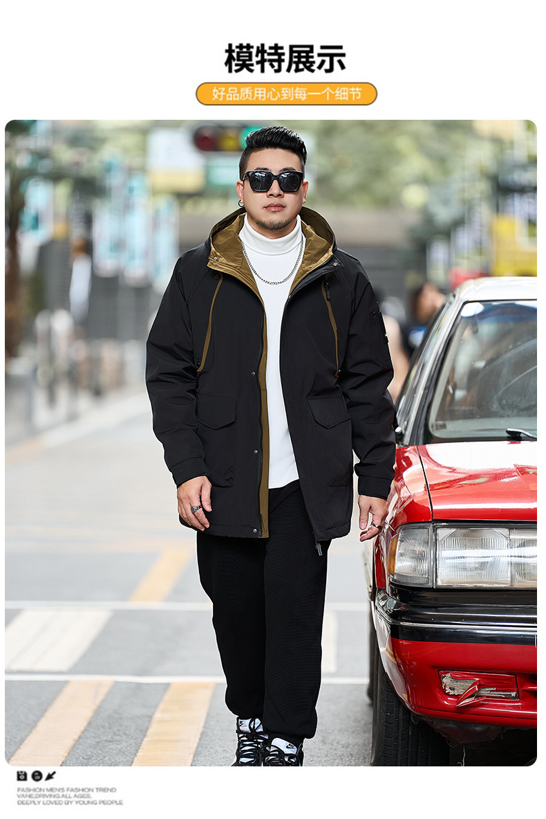 潮牌大码男装冬季宽松可脱卸帽棉服男加肥加大中长款胖子加厚棉服