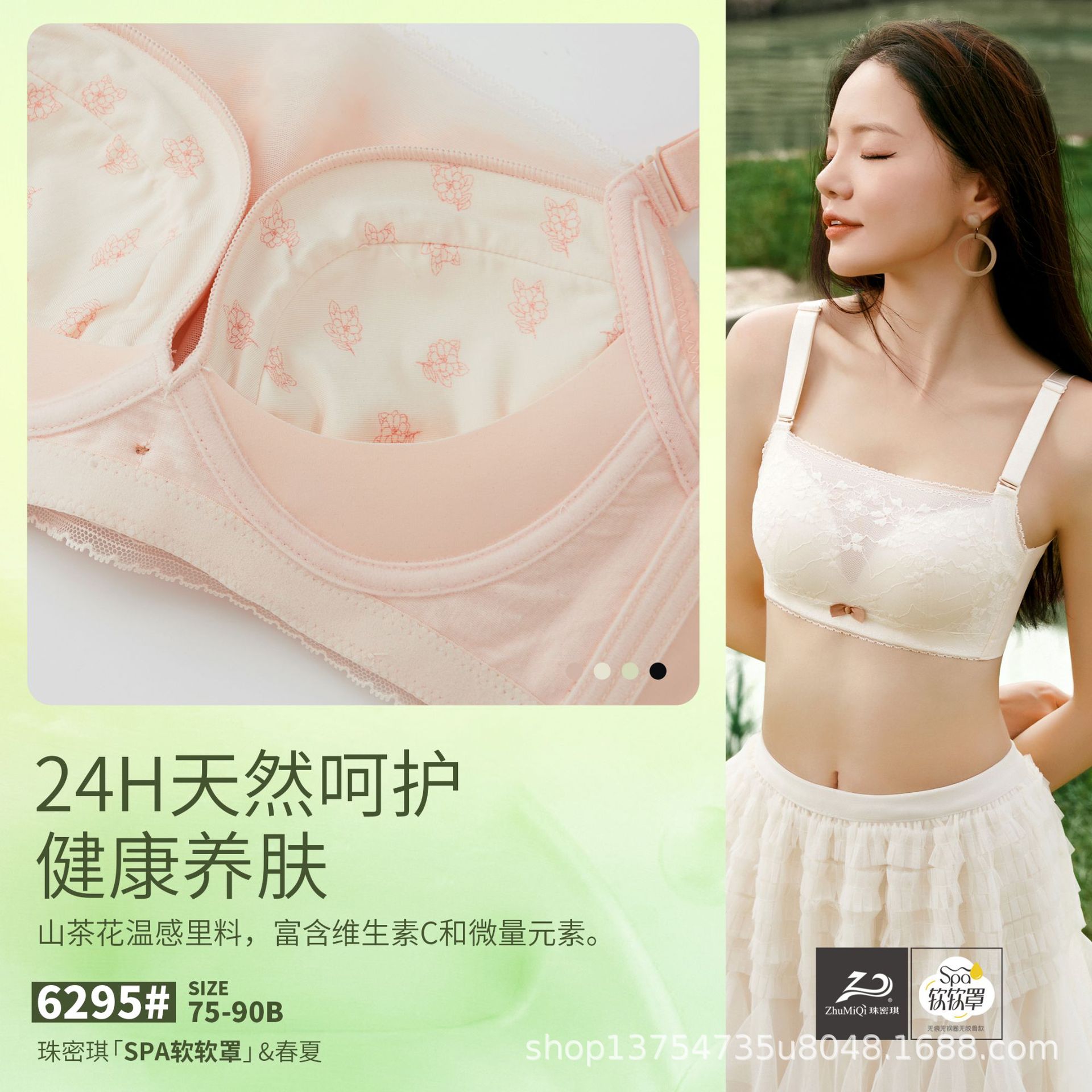 珠密琪の新型の6295は胸のb杯の中で厚い杯の通気の穴の清涼レースの快適さを拭いて傷のない美背は任意に裁断します。
